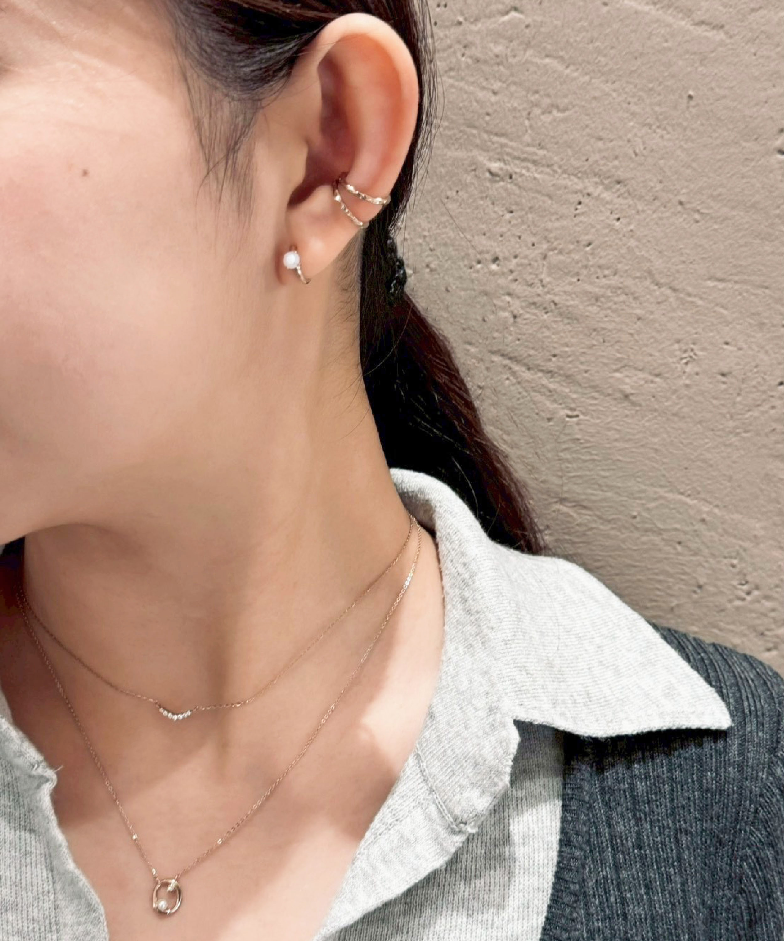 粉霧金色調溫潤細緻的光澤,在柔和中帶出微微金屬光感, 低調卻充滿質感,帶出溫暖的氛圍。飾品之間相互呼應, 細節處皆蘊藏珍珠與小鑽點綴其中,展現知性與甜美並存的風格。