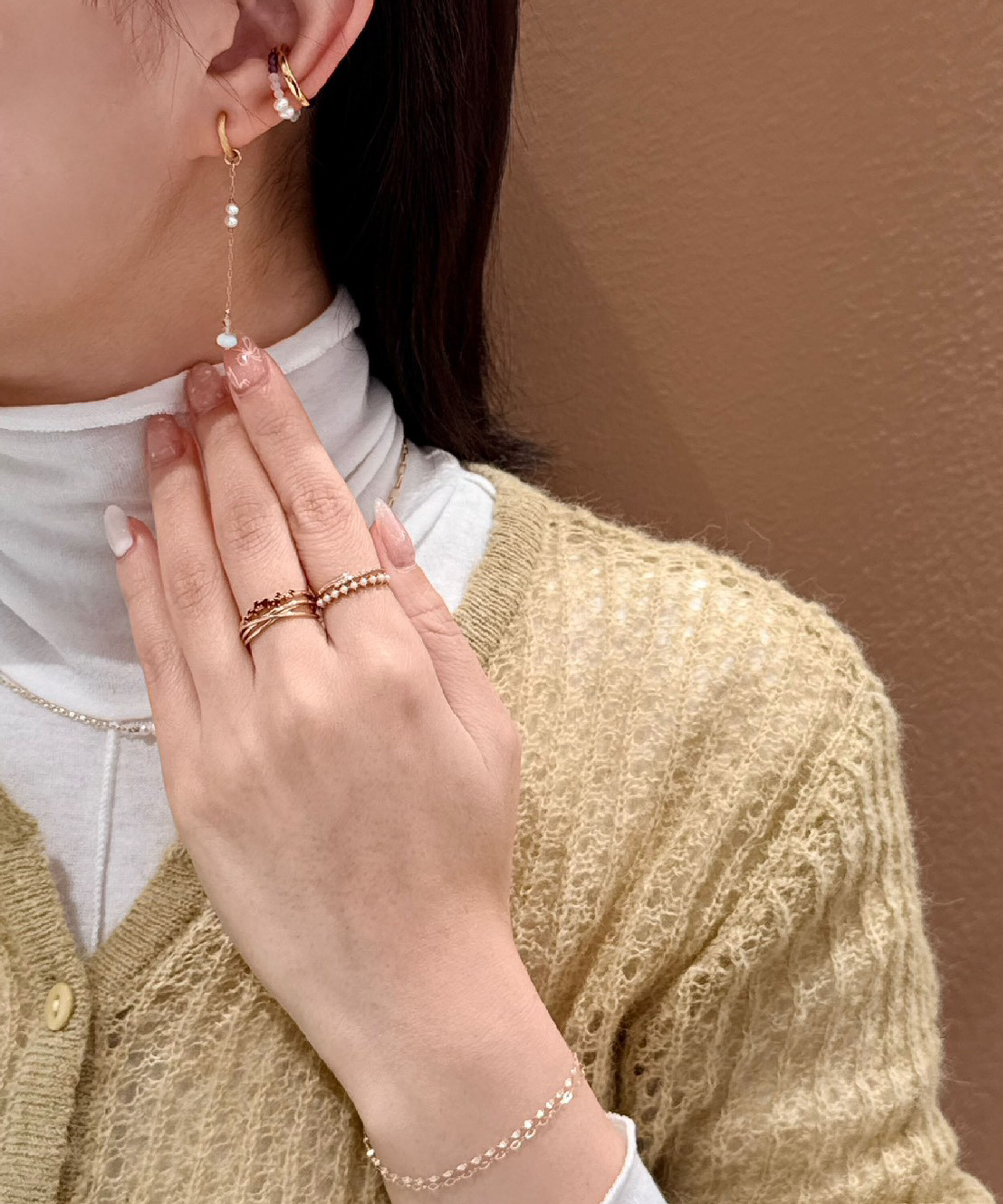 Fortune系列將天然石以不同切面與顏色點綴,跳躍設計讓整體搭配更顯活潑童趣。 耳環也可以自由搭配,享受多種組合的穿搭樂趣。