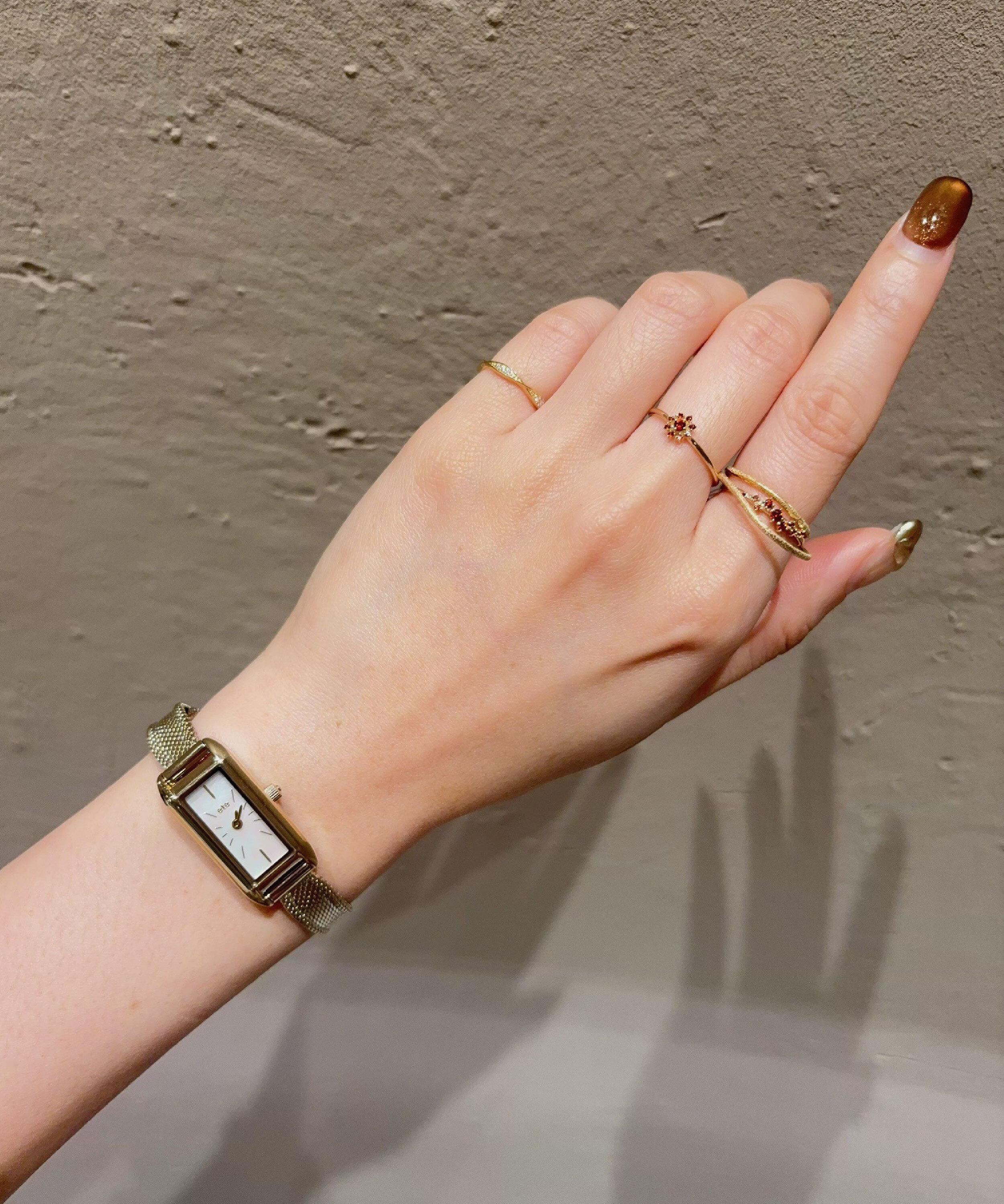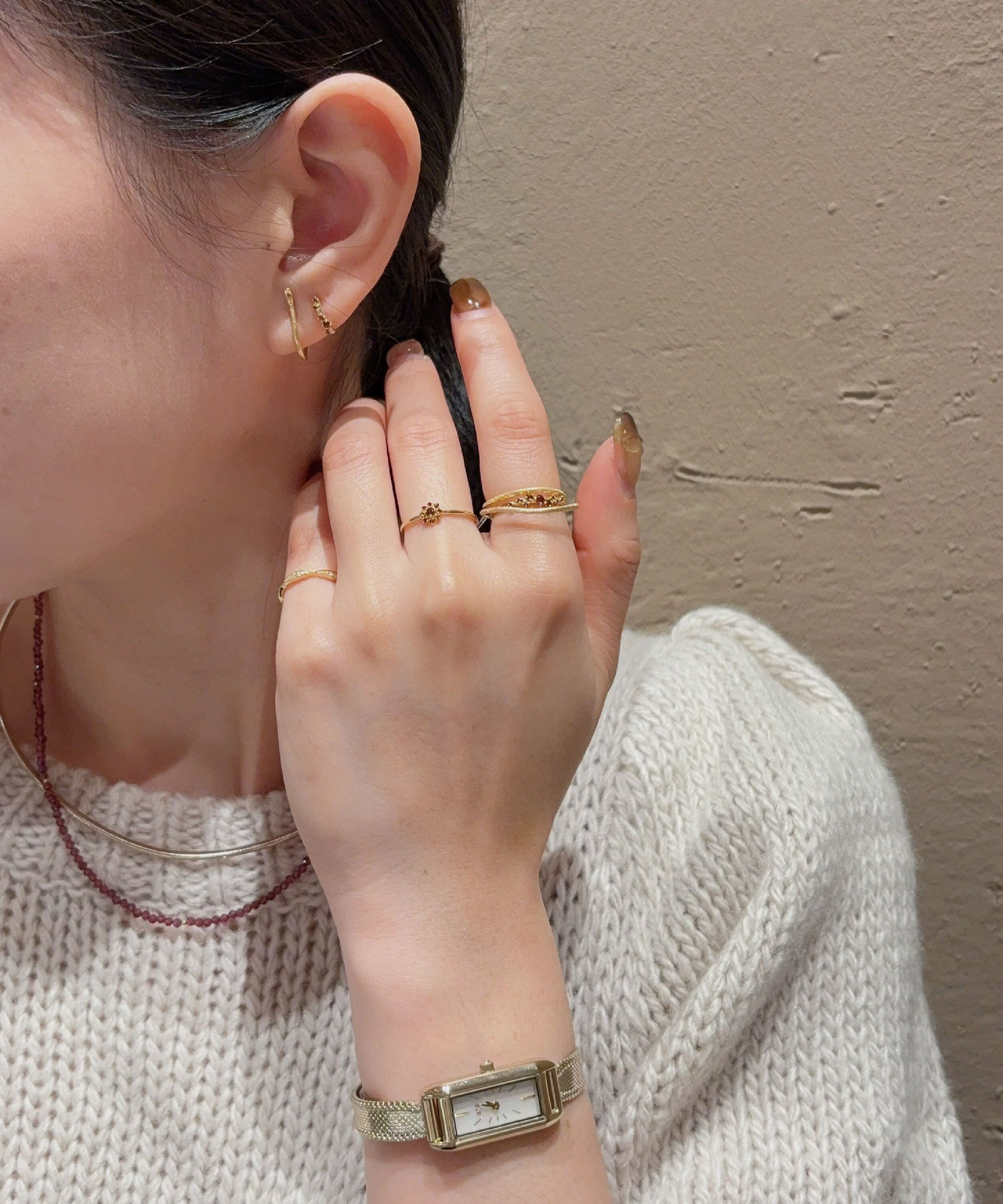 象徵著熱情、活力與強韌生命力的石榴石,沉穩紅色光芒溫暖而堅定的閃耀著,在脖子上閃爍著迷人的光澤,搭配同系列的石榴石戒指,與K18金層疊戒指疊加,營造出細膩的指間造型,讓日常搭配增添幾分優雅。