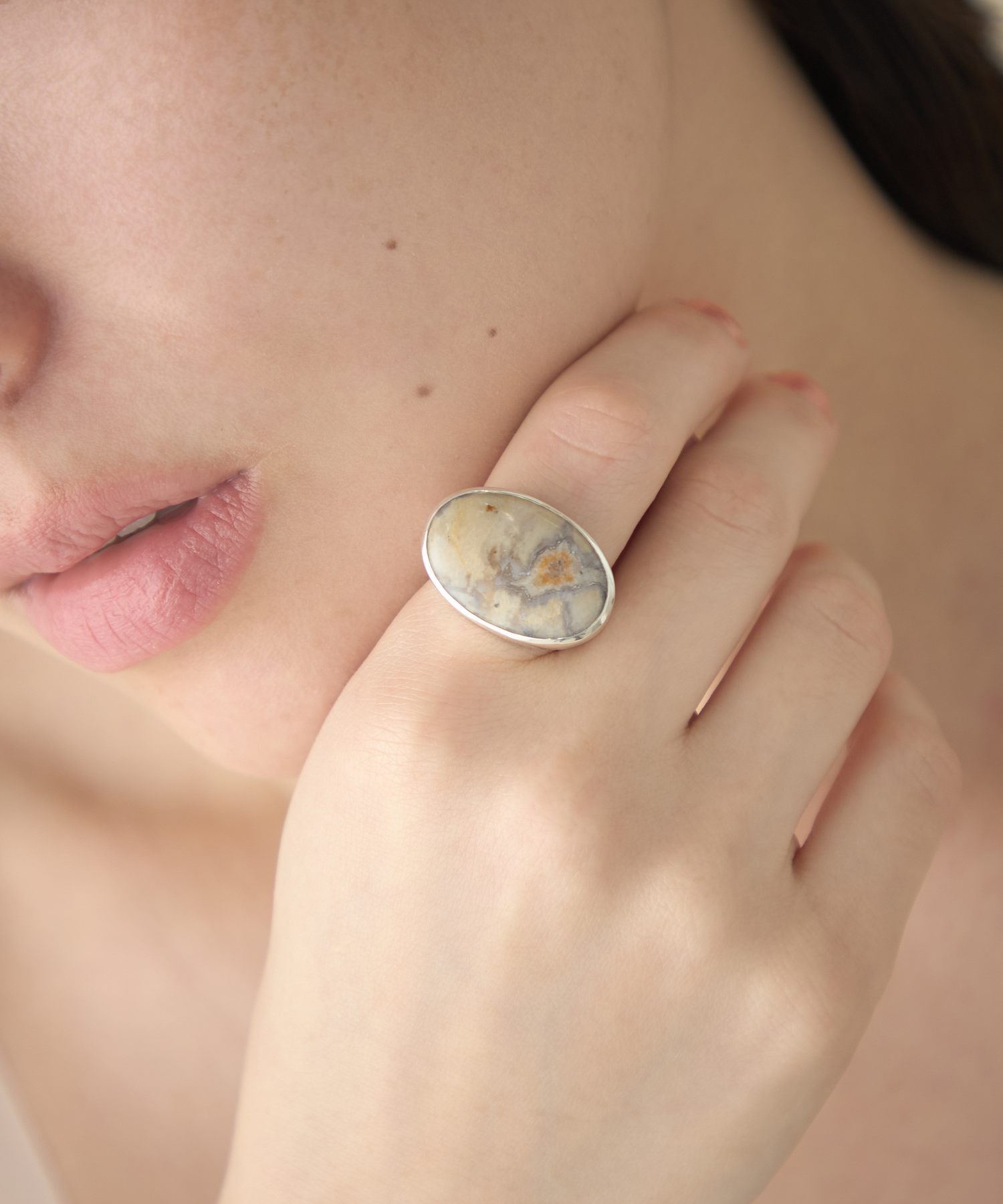 ete bijoux [Sphere] Re-grow 雙面切割球面瑪瑙再生銀戒指