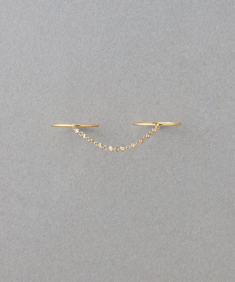 ete [Dew] K18YG 曉光流轉鑽石雙鍊戒