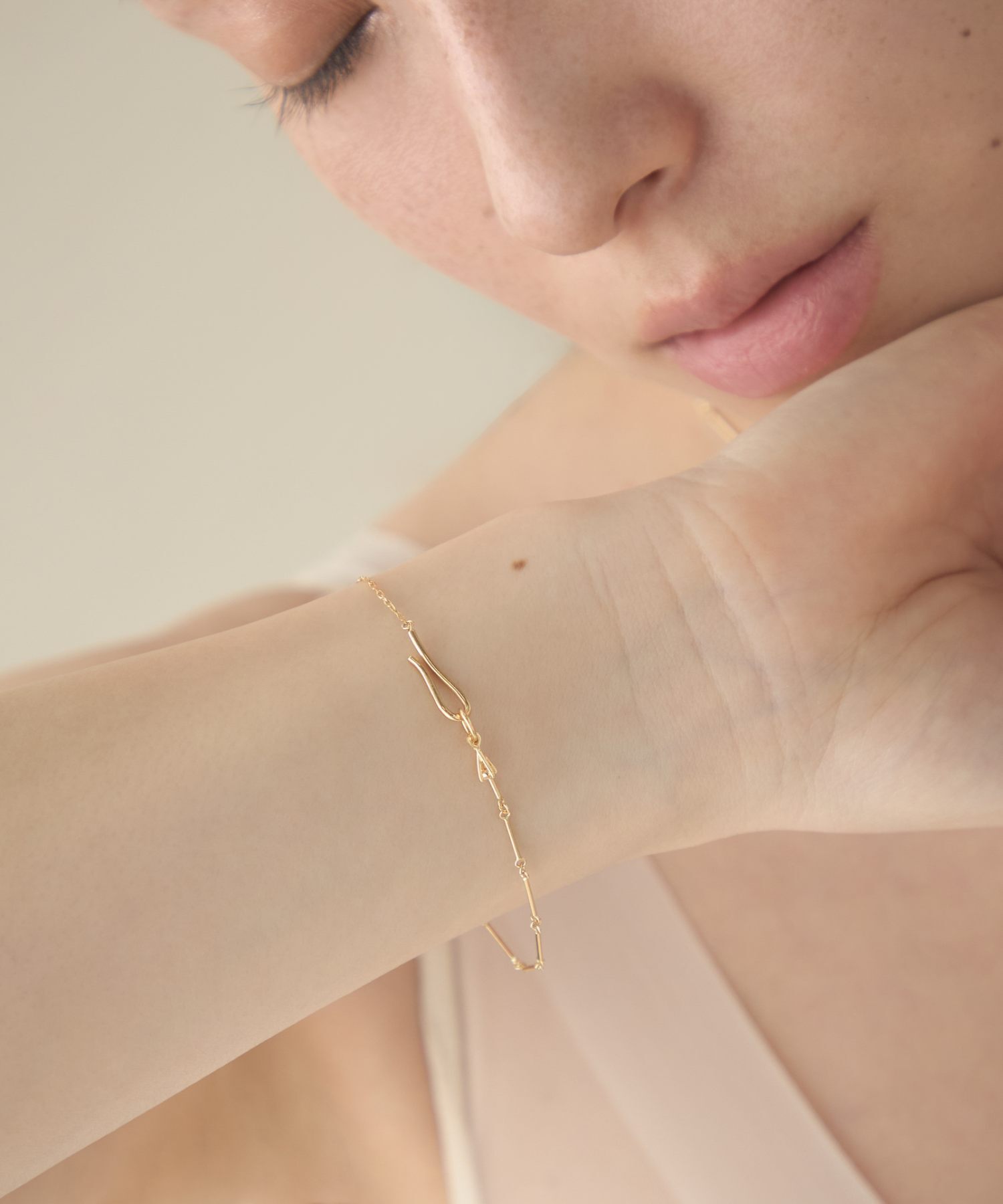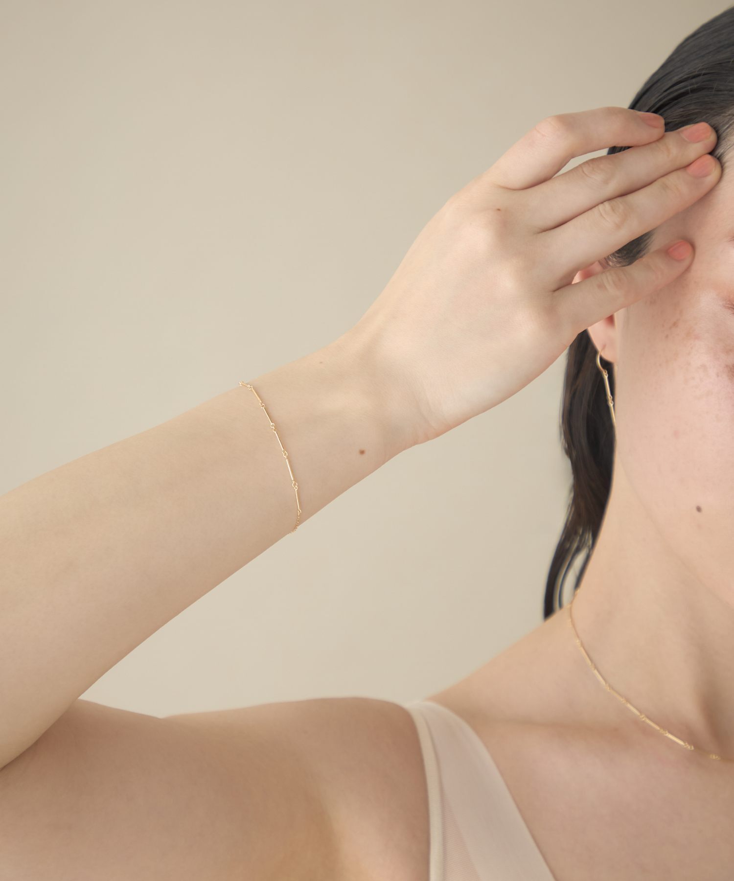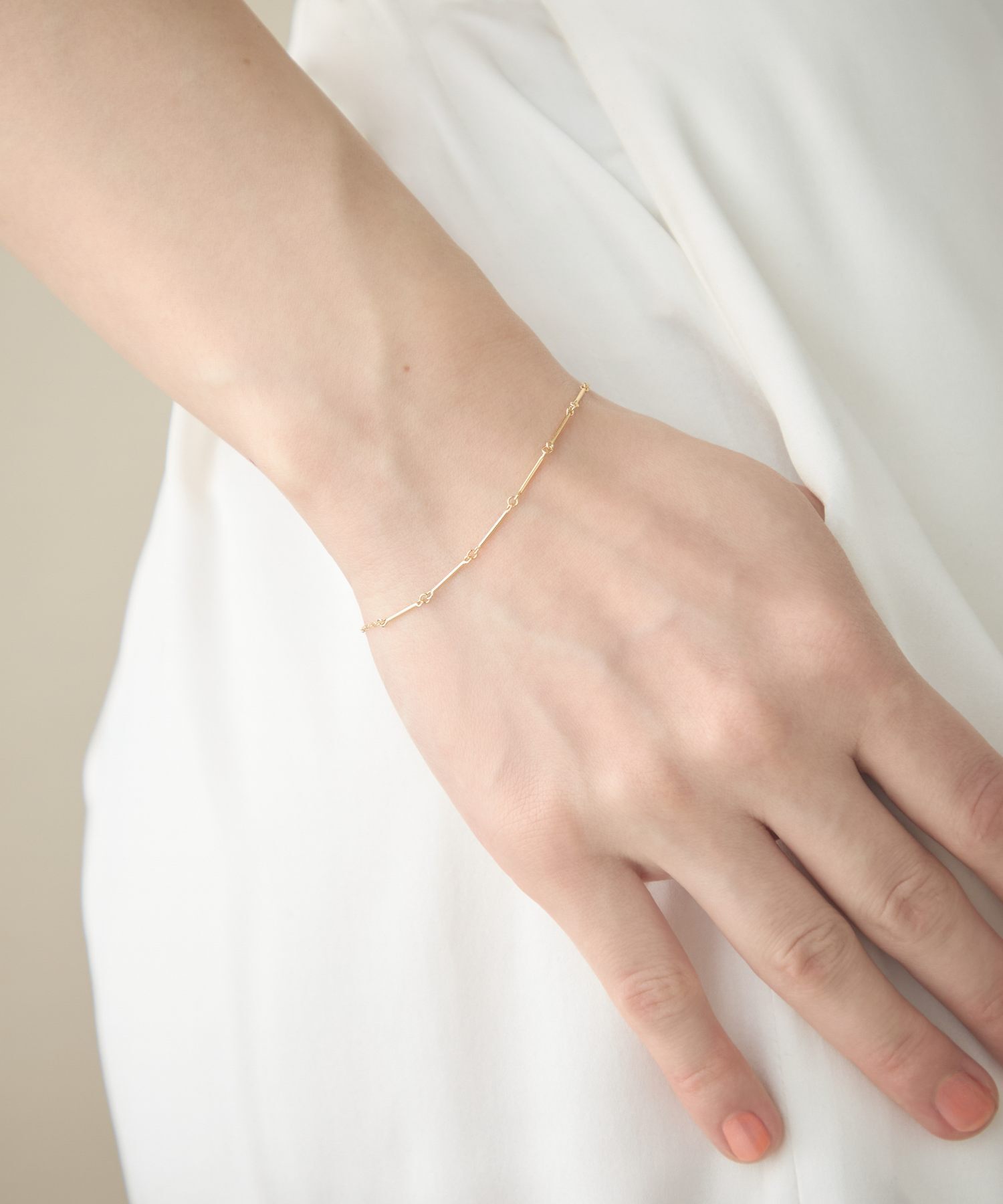 ete bijoux [Skinny] K18YG 俐落簡約線條鑽石點綴手鍊