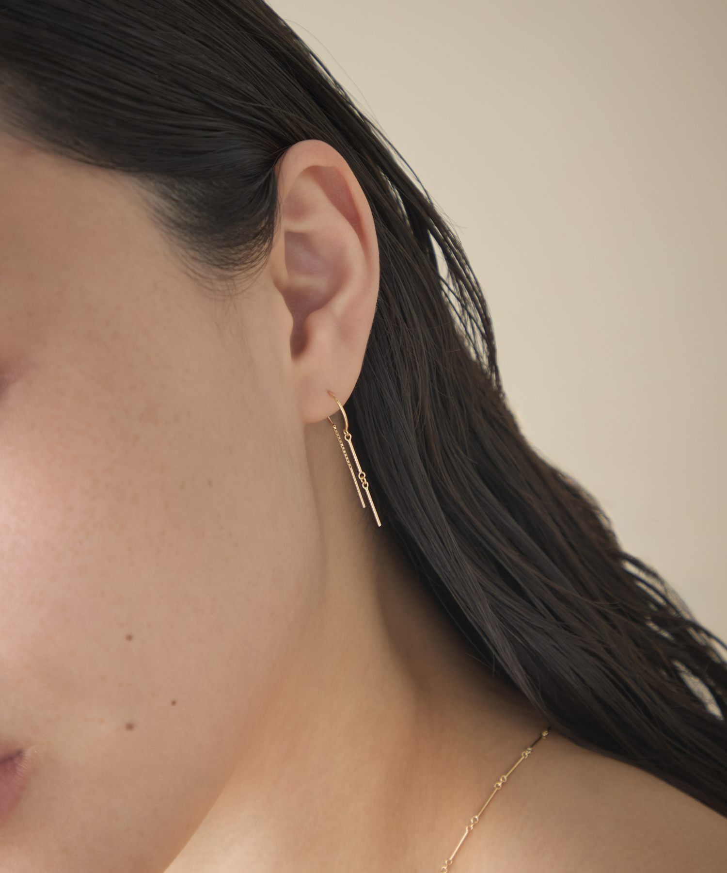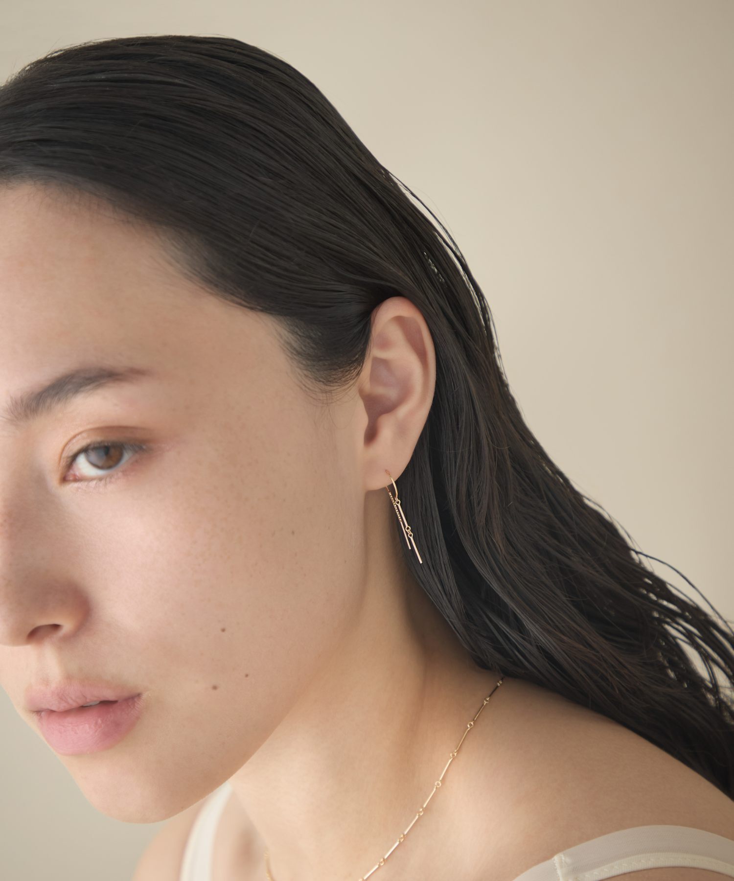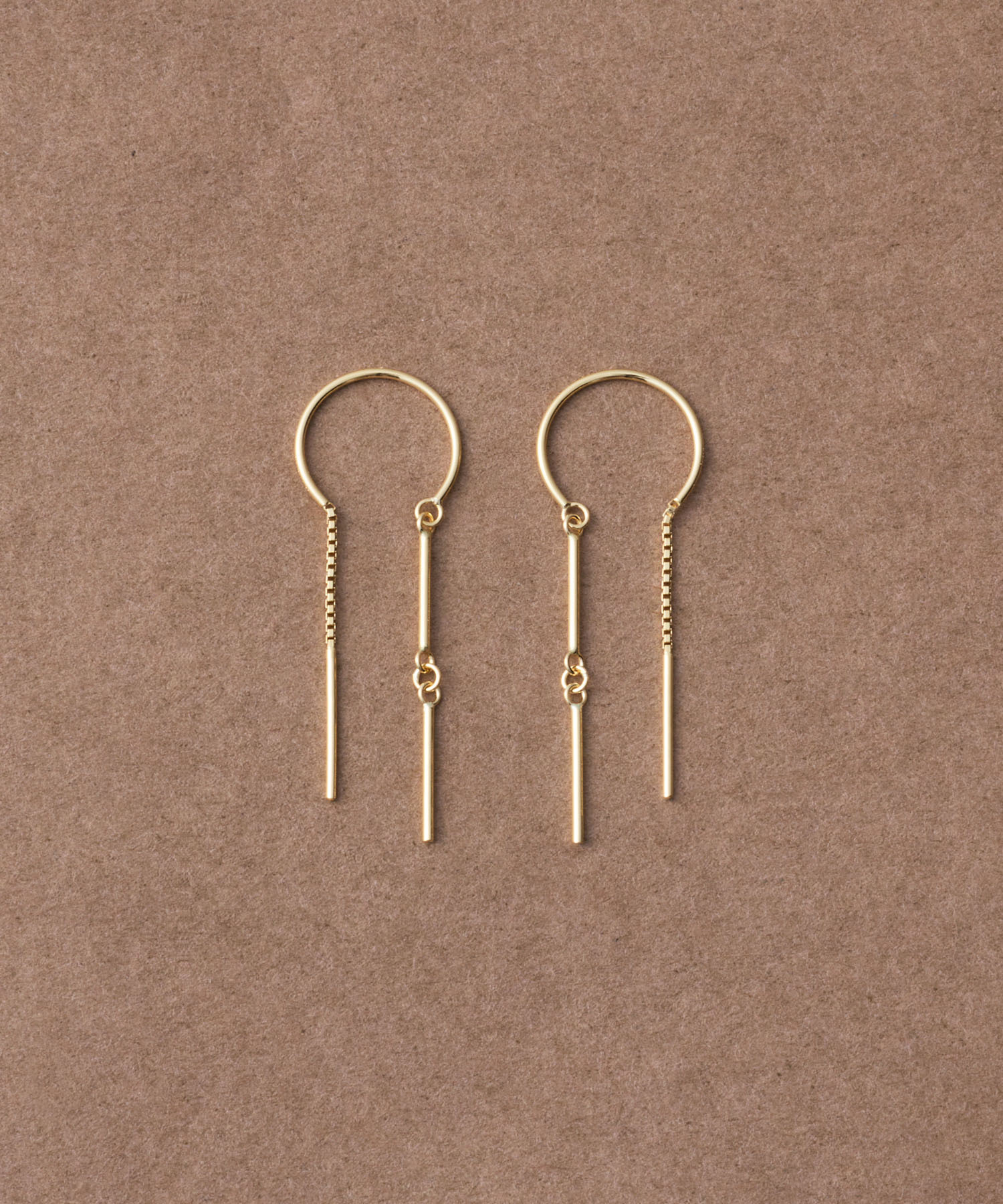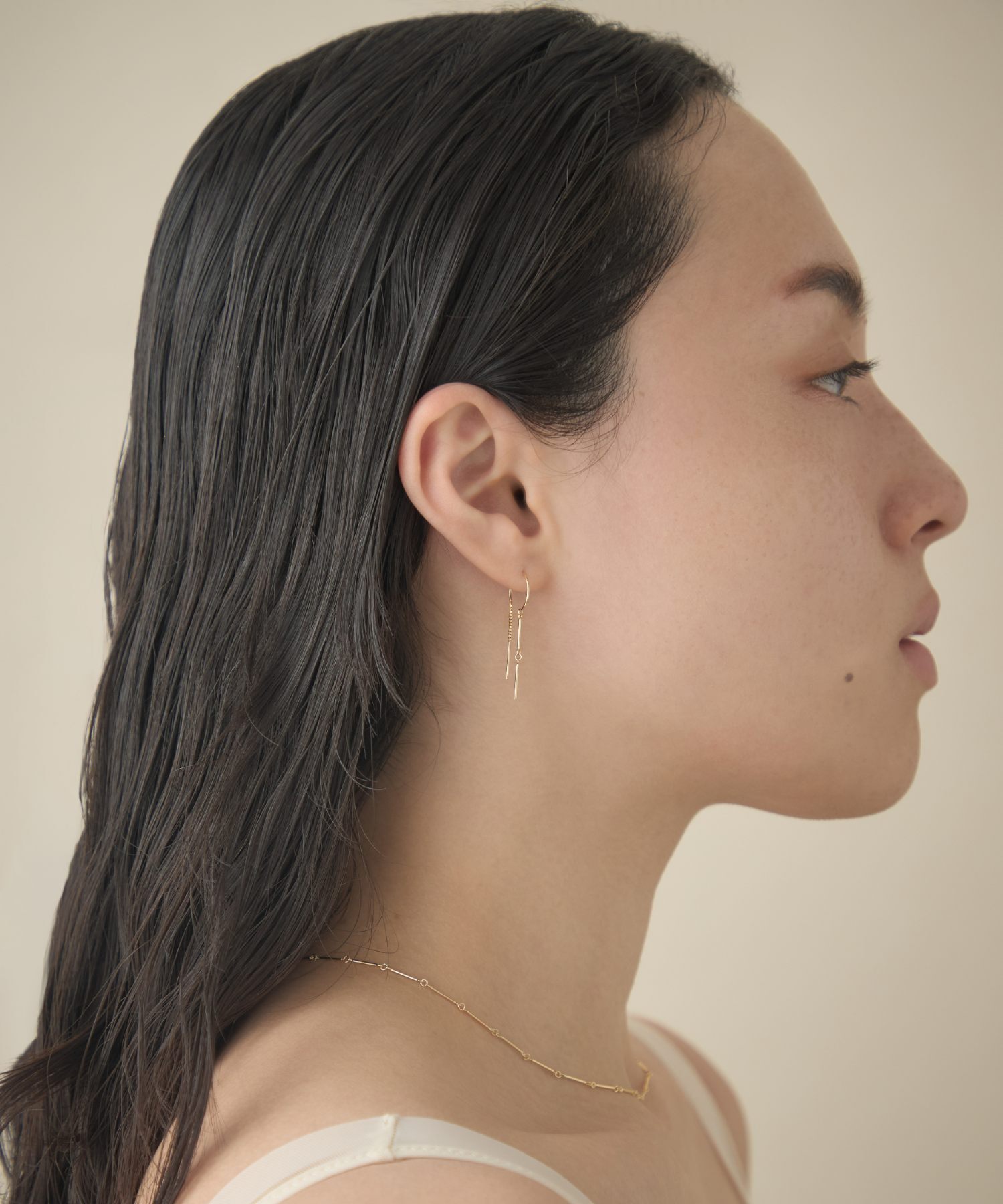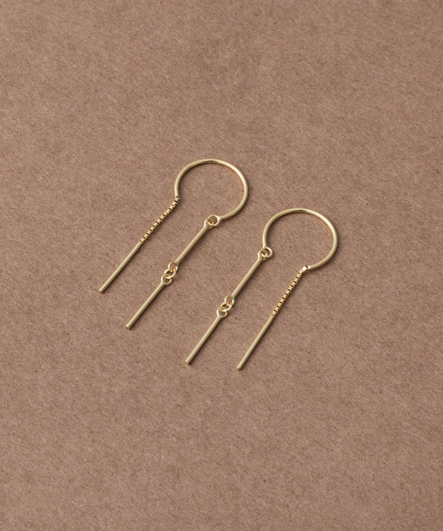 ete bijoux [Skinny] K18YG 簡約線條雙鏈條耳環