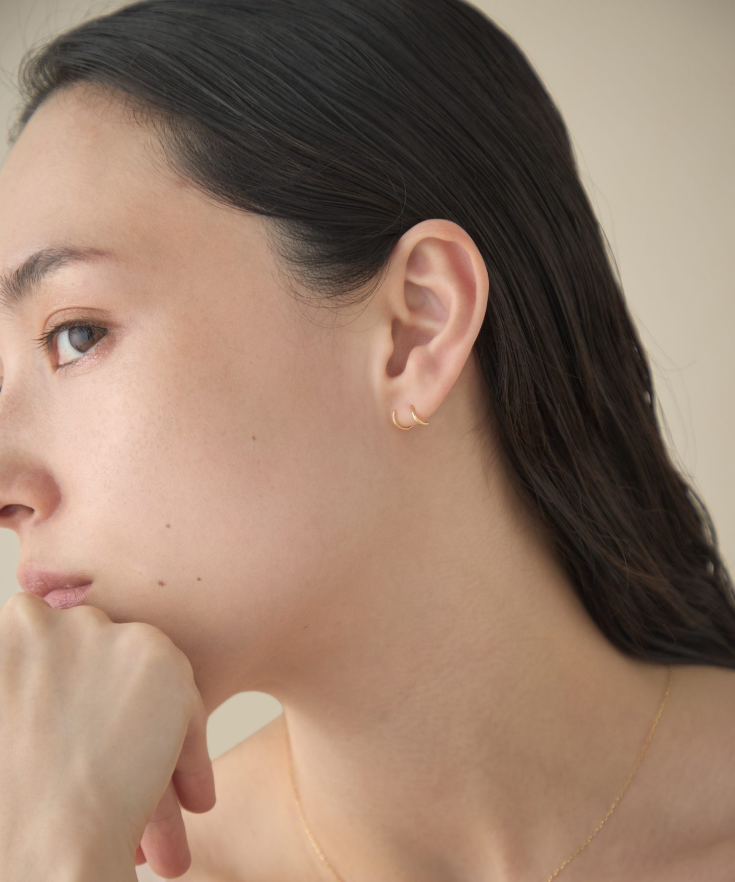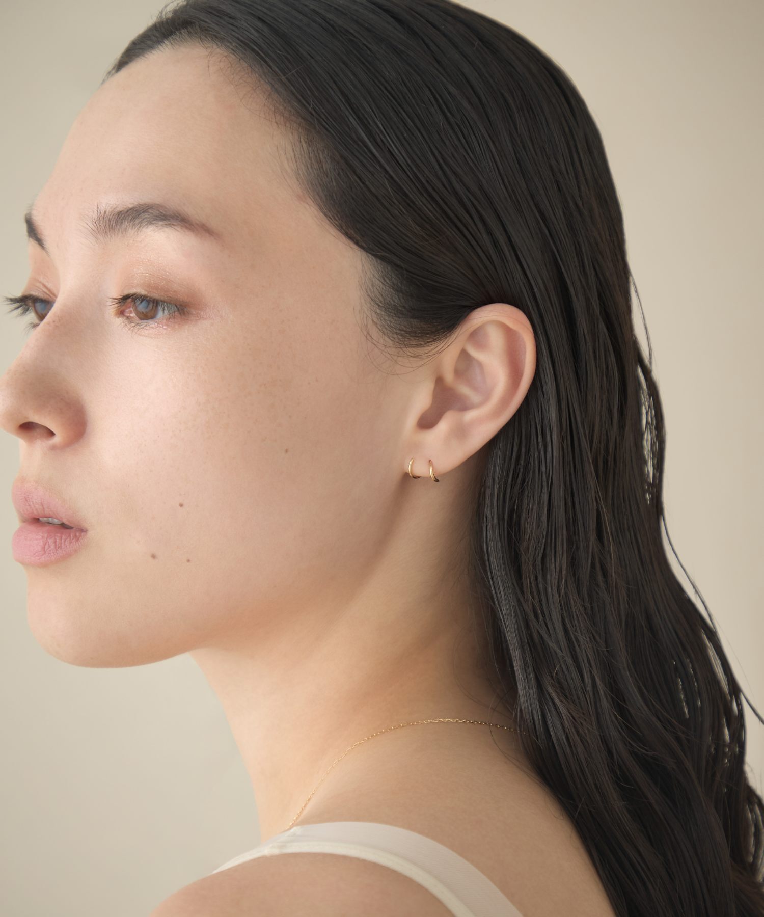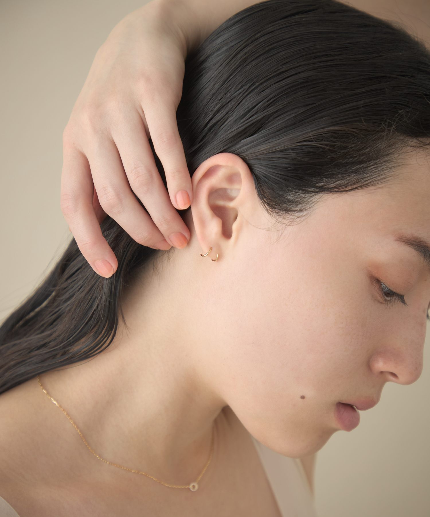 宛如層疊佩戴華麗圈式耳環般,展現簡約卻帶有感性氛圍的造型。