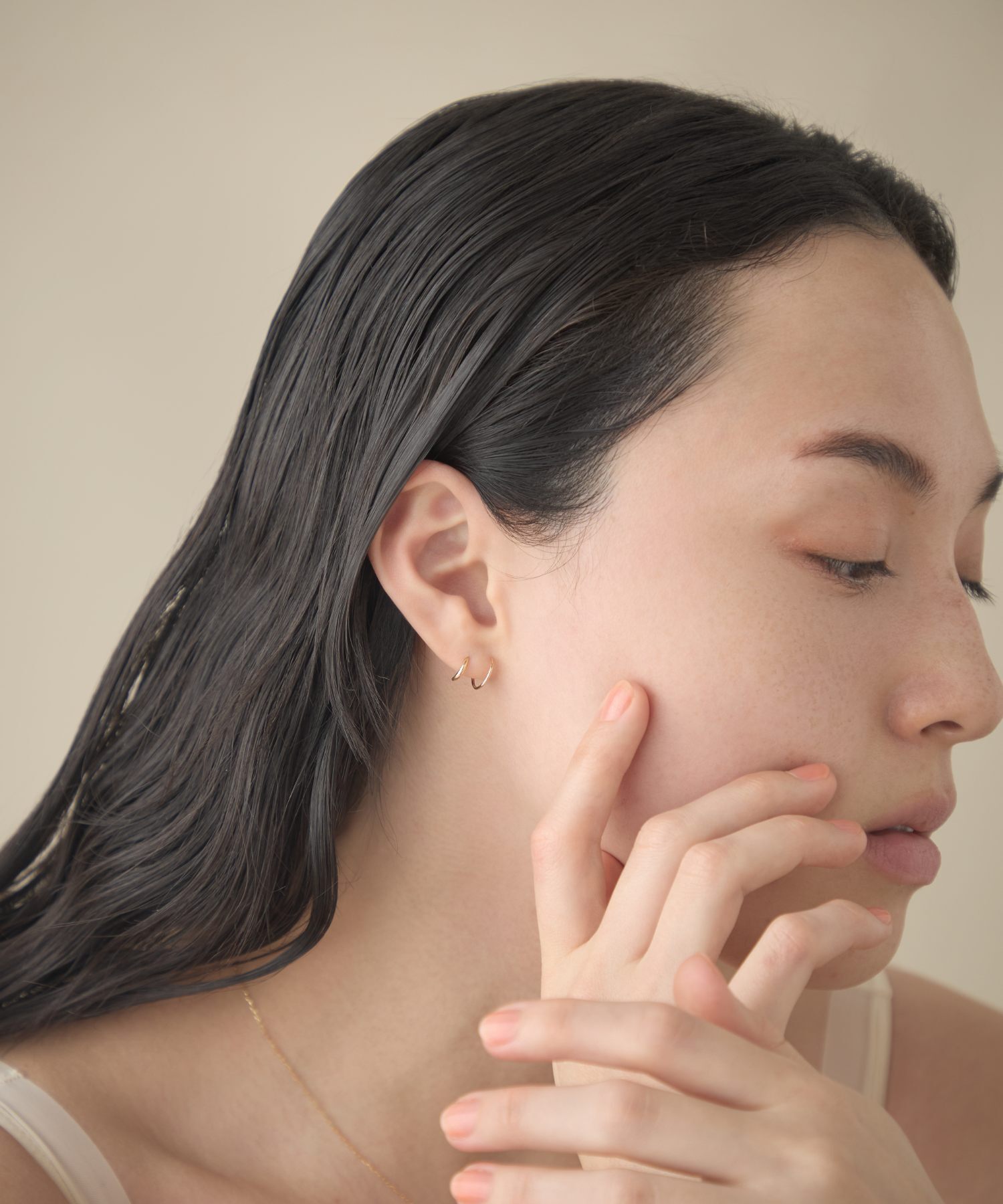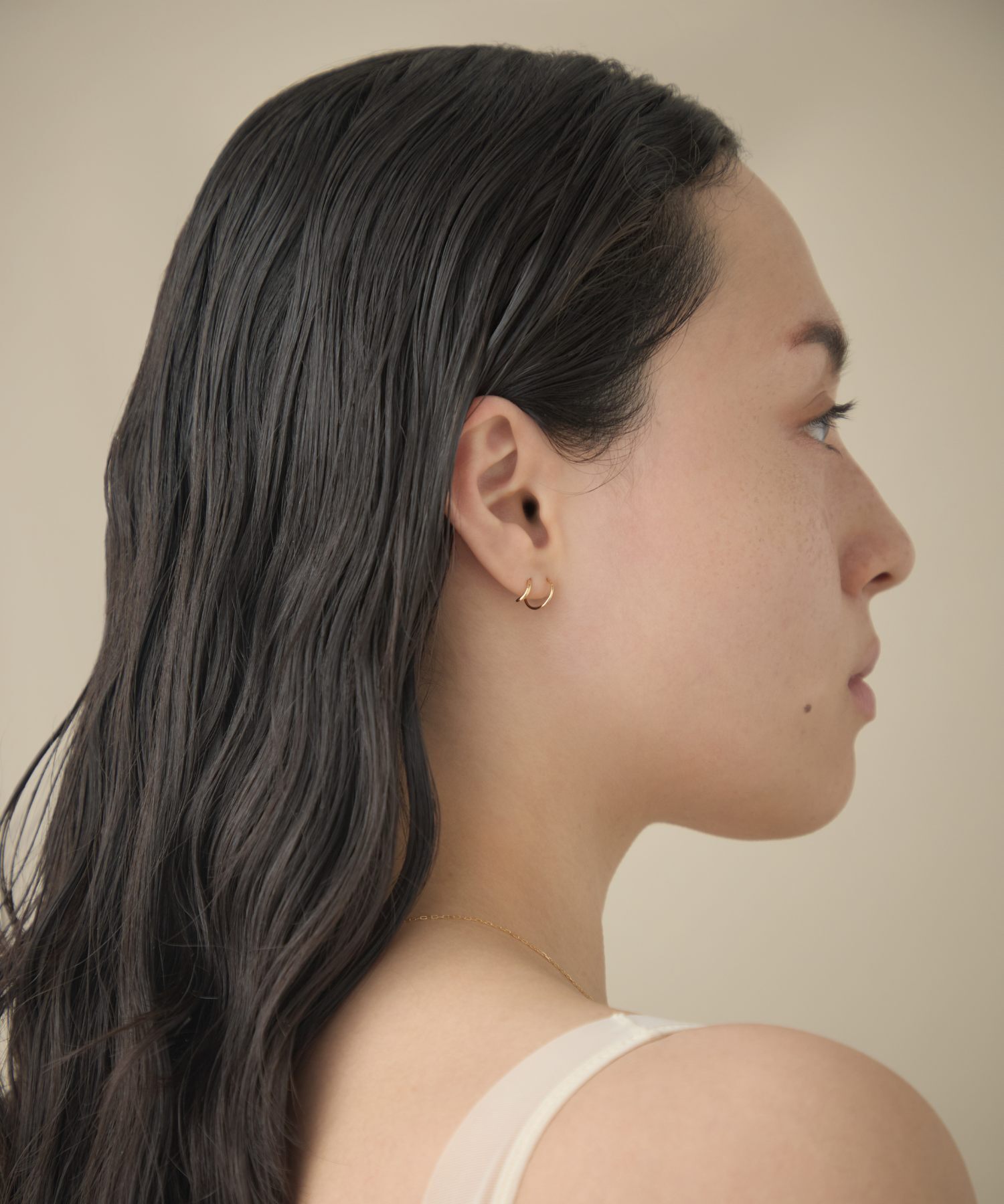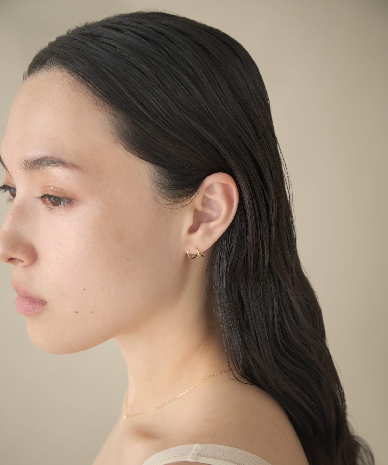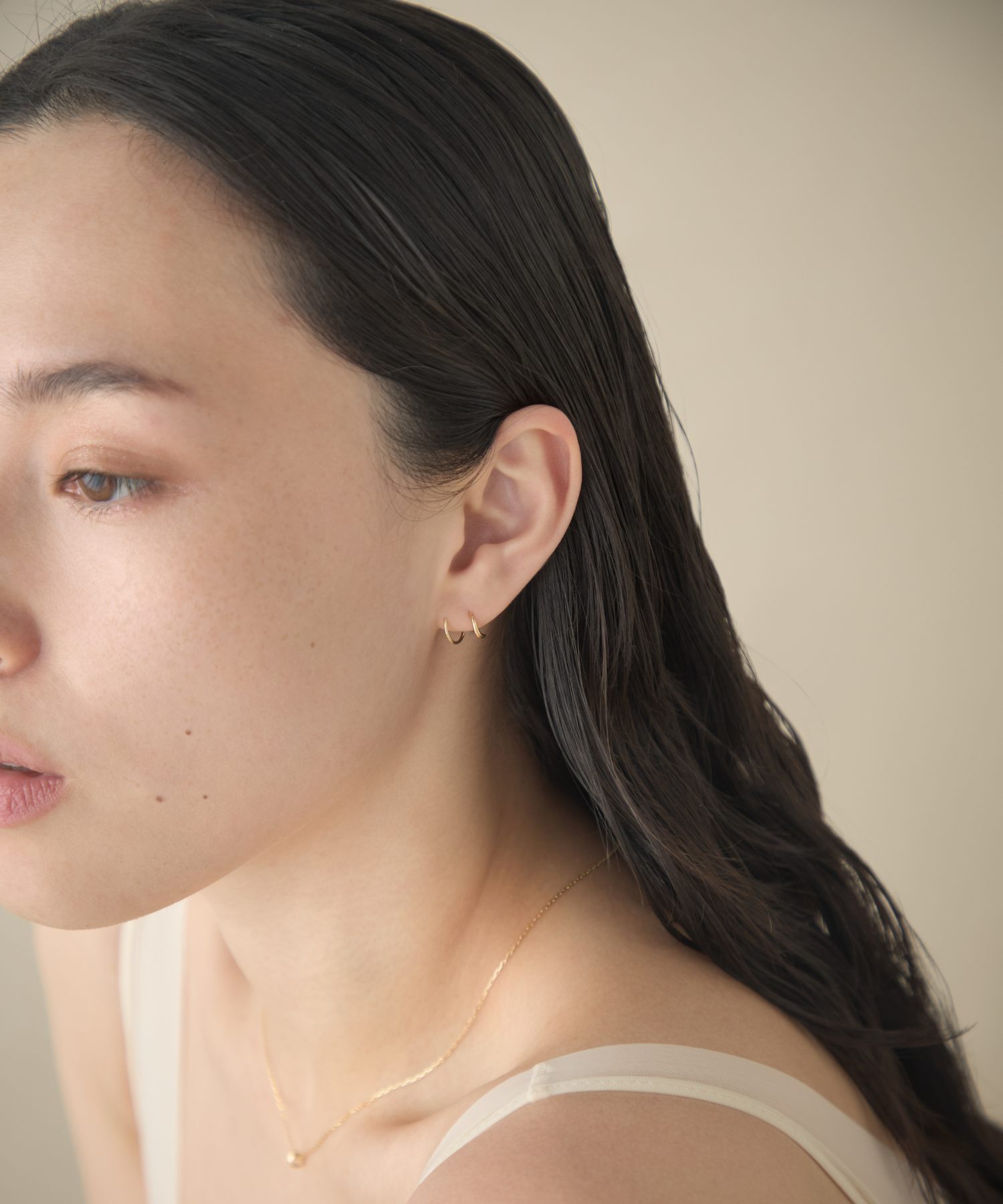 宛如層疊佩戴華麗圈式耳環般,展現簡約卻帶有感性氛圍的造型。