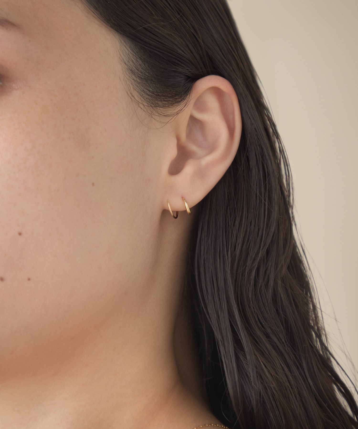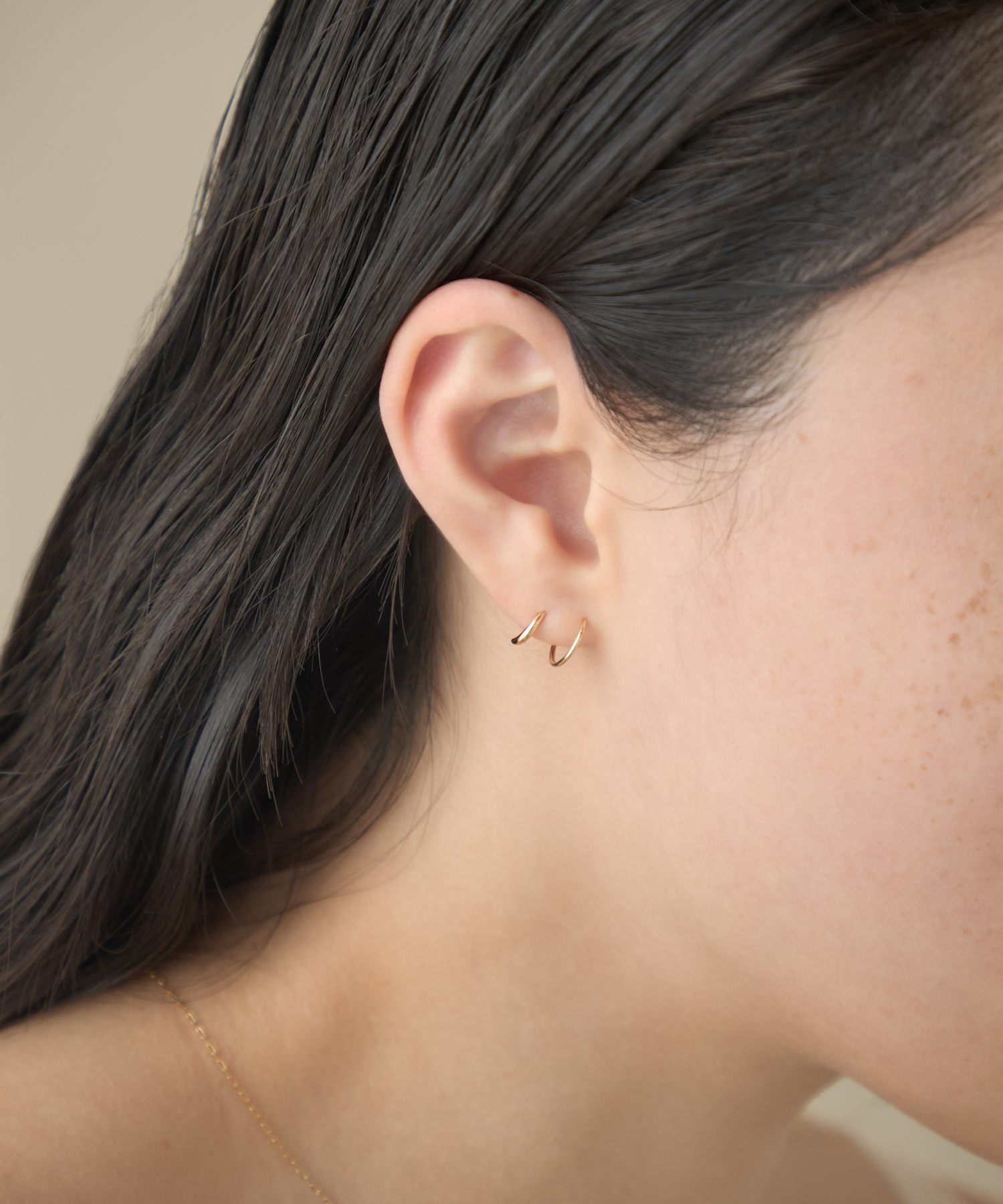 即可呈現如同佩戴兩枚耳環的層疊造型。