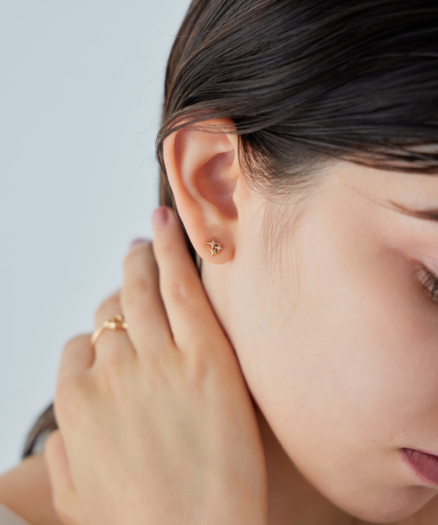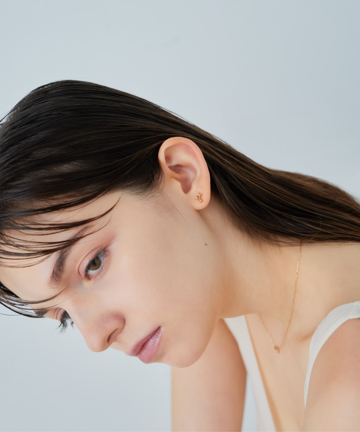 材質: K18黃金(不含鎳,減緩過敏可能性),天然棕色鑽石0.02ct;耳針及耳後釦:K18黃金(不含鎳,減緩過敏可能性)
