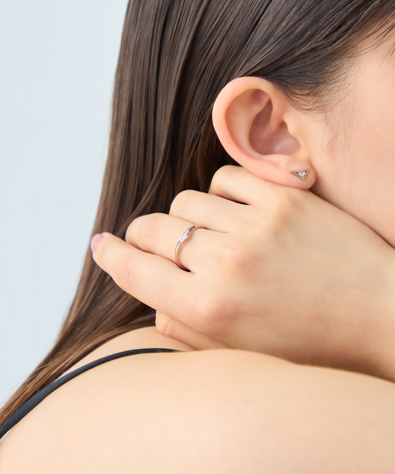 材質:K18粉霧金(不含鎳,減緩過敏可能性)、天然鑽石0.02ct