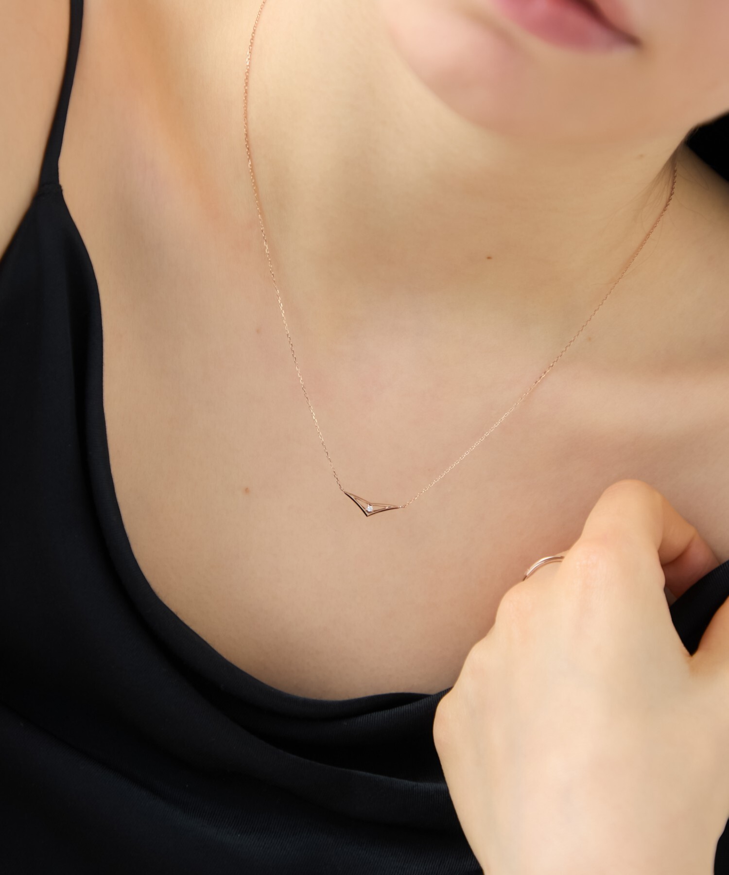 ete [Moon lit] K18MPG 映月V型鏤空單鑽項鍊