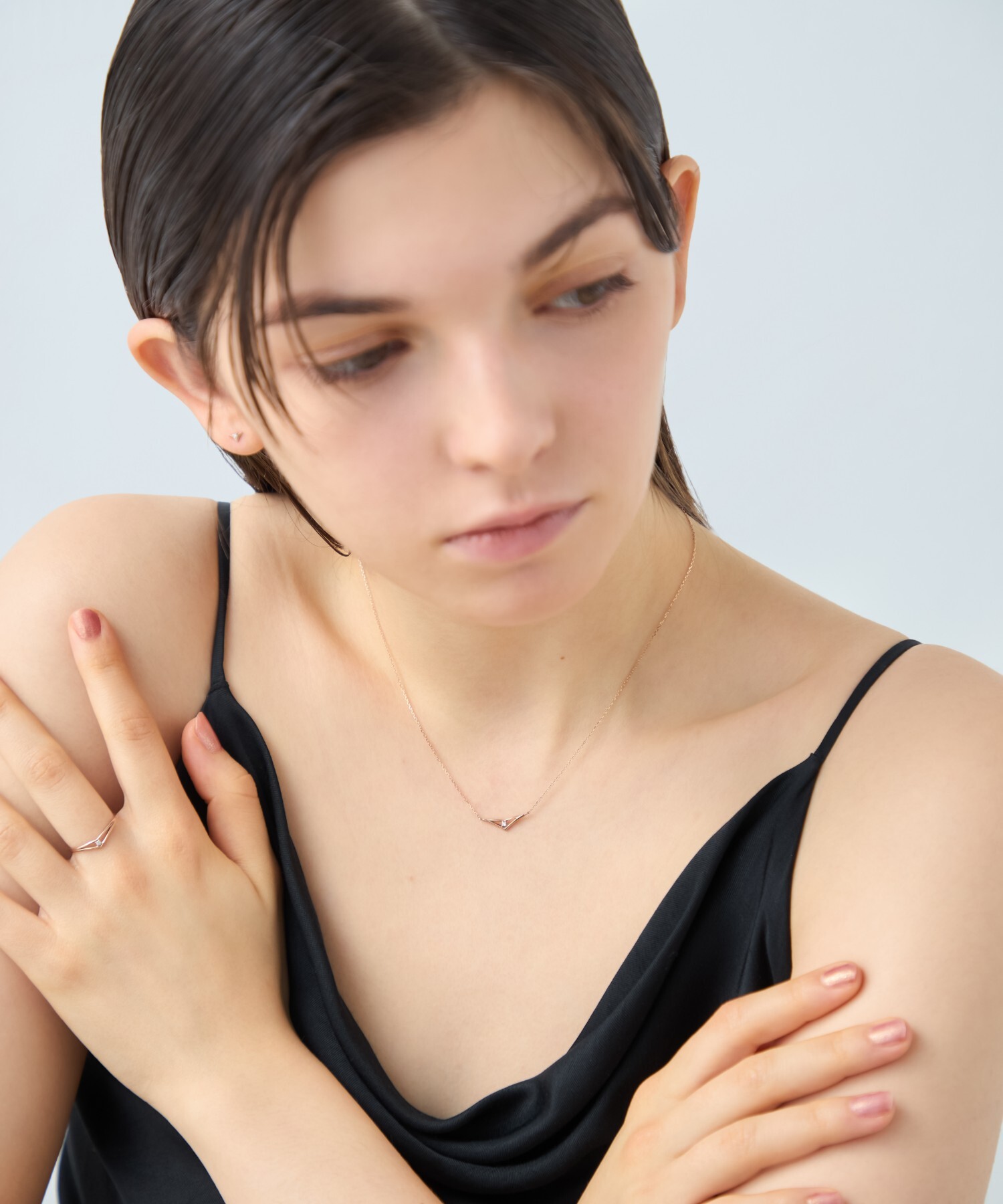 材質:K18粉霧金(不含鎳,減緩過敏可能性)、天然鑽石0.008ct、釦環:K18玫瑰金(不含鎳,減緩過敏可能性)