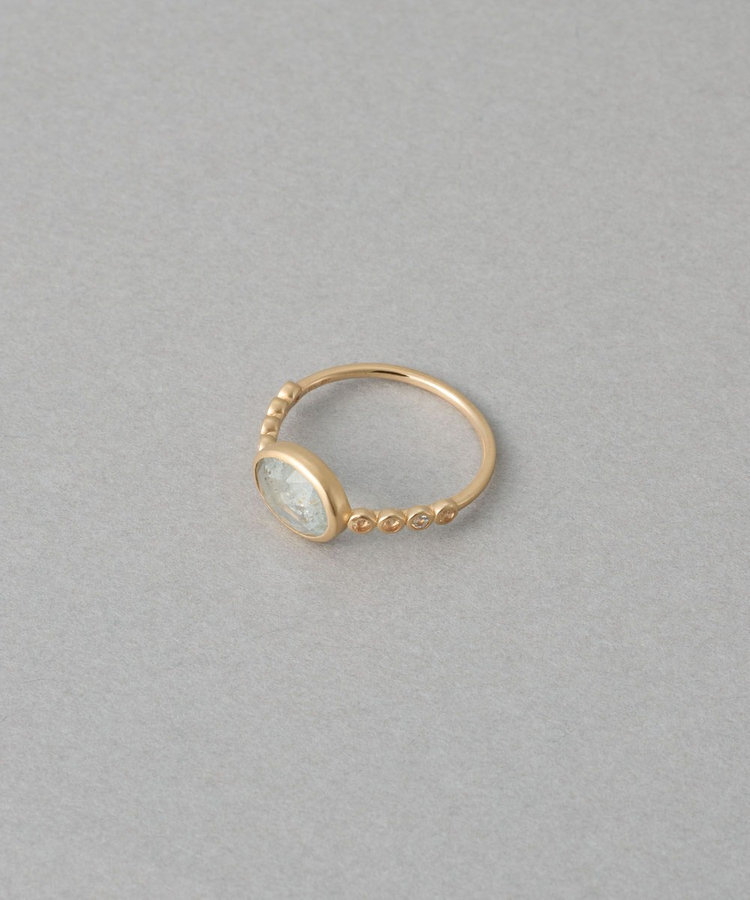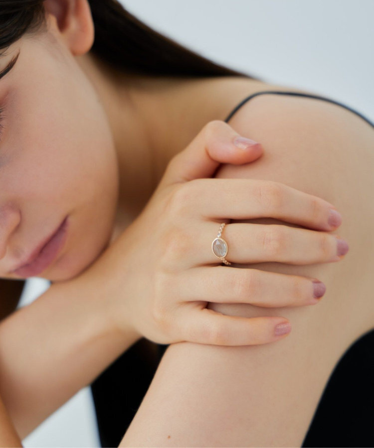 戒環上綴滿的拉長石,呈現如波光漣漪般的漸層光澤,宛如海面微微蕩漾。
