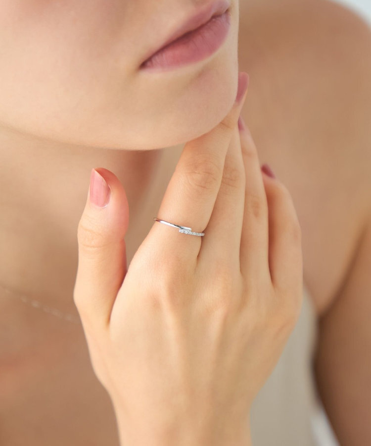ete [Layered] K10WG 細緻曲線鑽石戒指