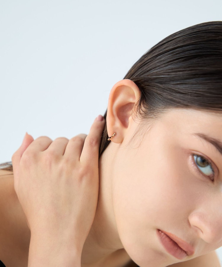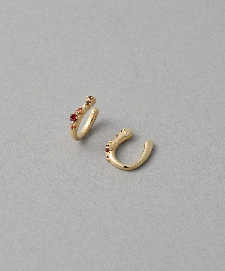 如同果實般散落的石榴石,大小漸層排列,流暢延伸至耳環末端,展現精緻立體感。