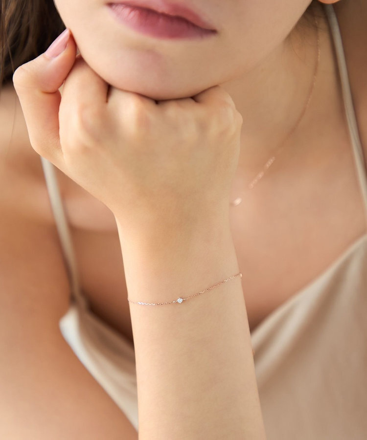 ete [Layered] K10MPG 層疊單鑽爪鑲鑽石手鍊
