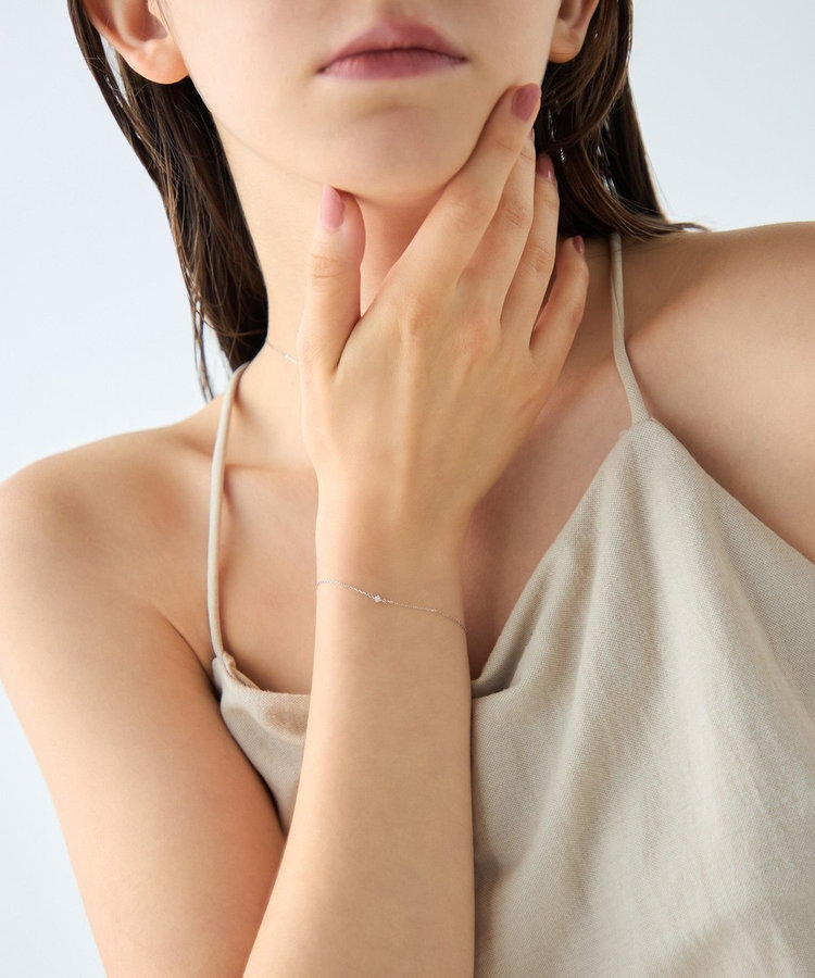 ete [Layered] K10WG 層疊單鑽爪鑲鑽石手鍊