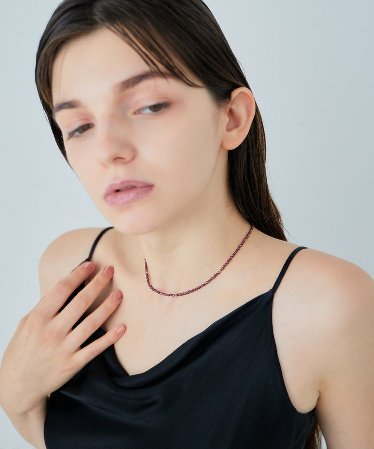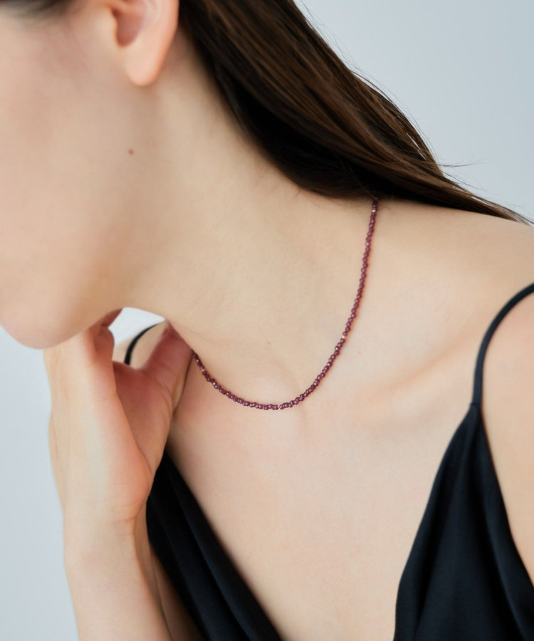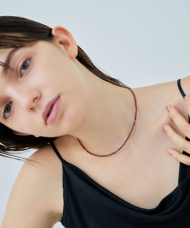 細緻切割的石榴石在頸間閃耀迷人光澤,展現精緻優雅的氛圍。