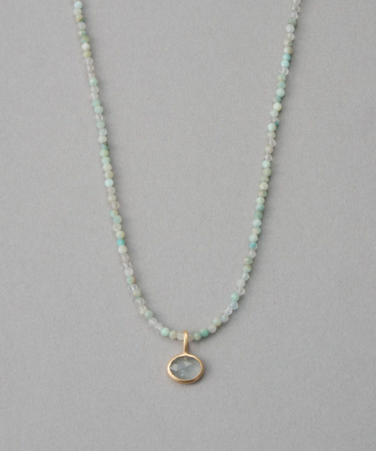 ete [My Precious] K10YG 繽紛海藍寶石串織長石項鍊