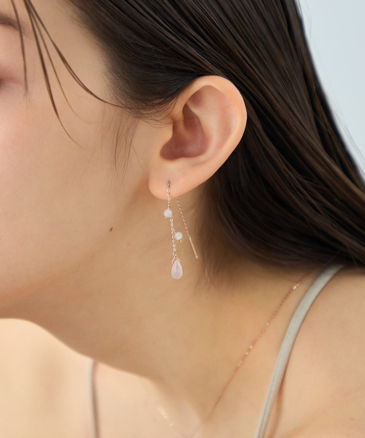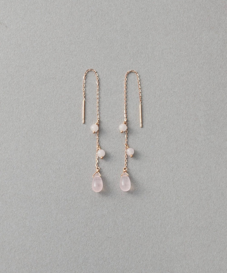 ete [Cherry Blossom] K10MPG 玫瑰石英垂墜美式耳環