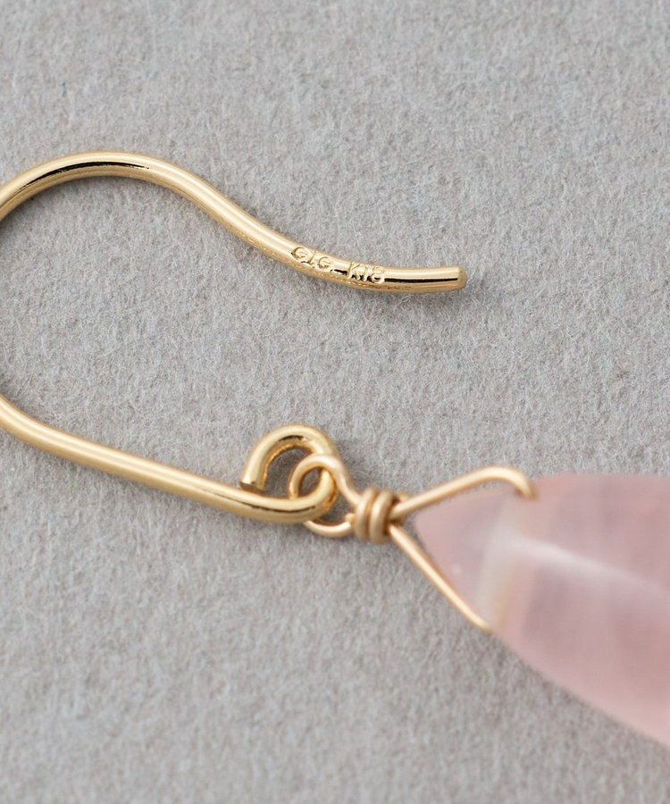 K10 黃金(不含鎳,減緩過敏可能性);耳針:K18 黃金(不含鎳,減緩過敏可能性);寶石:A:玫瑰石英、B:綠石英、C:紅瑪瑙、D:透明水晶、E:海藍寶石、F:白色拉長石、G:藍玉髓