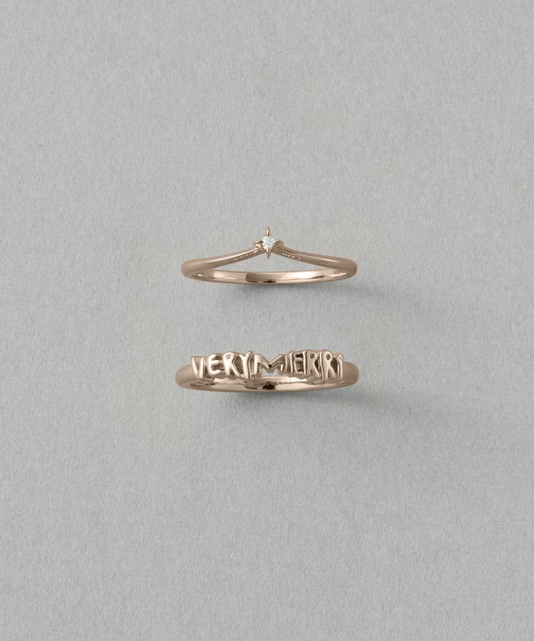 【預購商品】ete [Winter Treat|VERY MERRY] 鑽石/手繪字母 益智雙環戒指