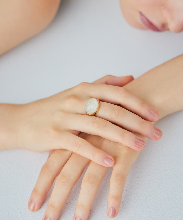 以寶石造型鑲嵌,賦予指間俏皮趣味,同時展現低調的優雅質感。