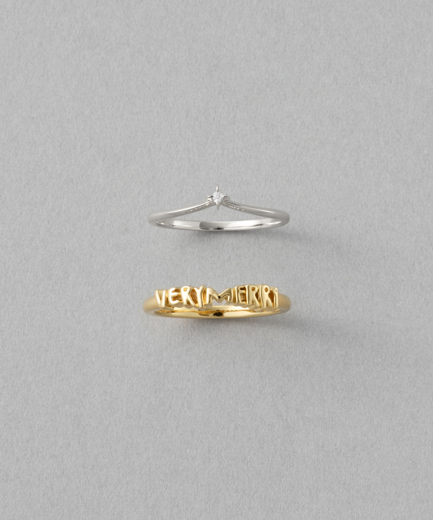 ete [Winter Treat|VERY MERRY] 鑽石/手繪字母 益智雙環戒指