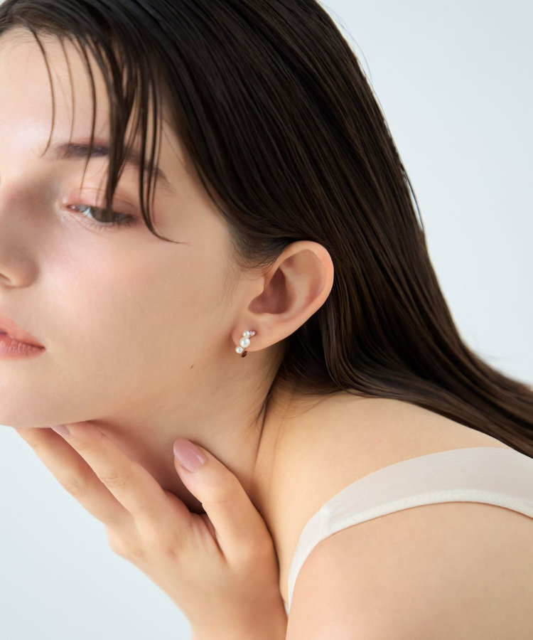 粉霧金色調映襯珍珠與鑽飾的細膩光芒,耳釦鏈條隨動搖曳,優雅迷人。