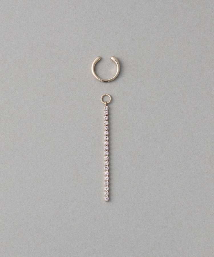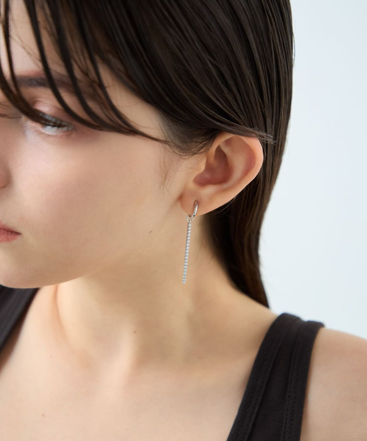 ete [Line Stone] 線形垂墜寶石C型夾式耳環