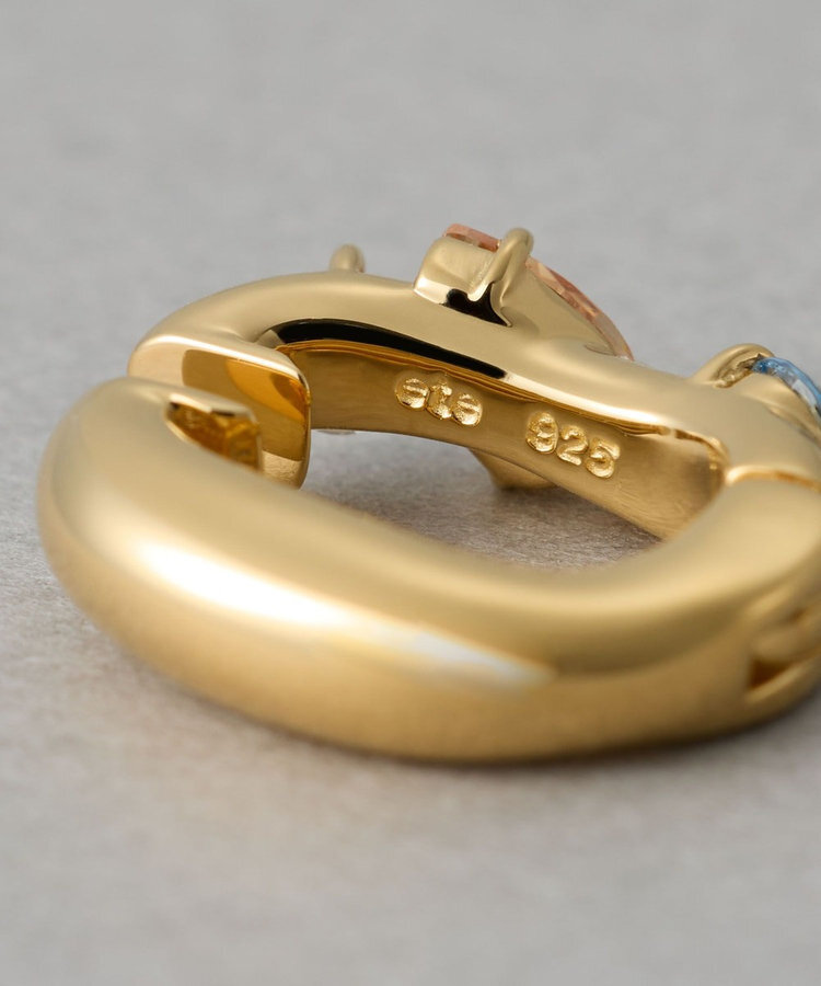 金色:SV925純銀包K18黃金塗層(不含鎳,減緩過敏可能性)、鋯石(白色、深香檳色、香檳色)、天藍托帕人造石,彈簧釦:不鏽鋼包鉑金塗層(不含鎳,減緩過敏可能性)