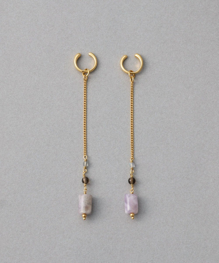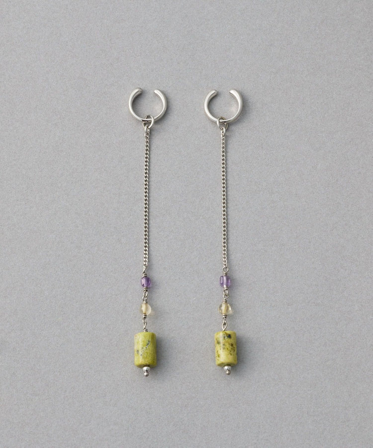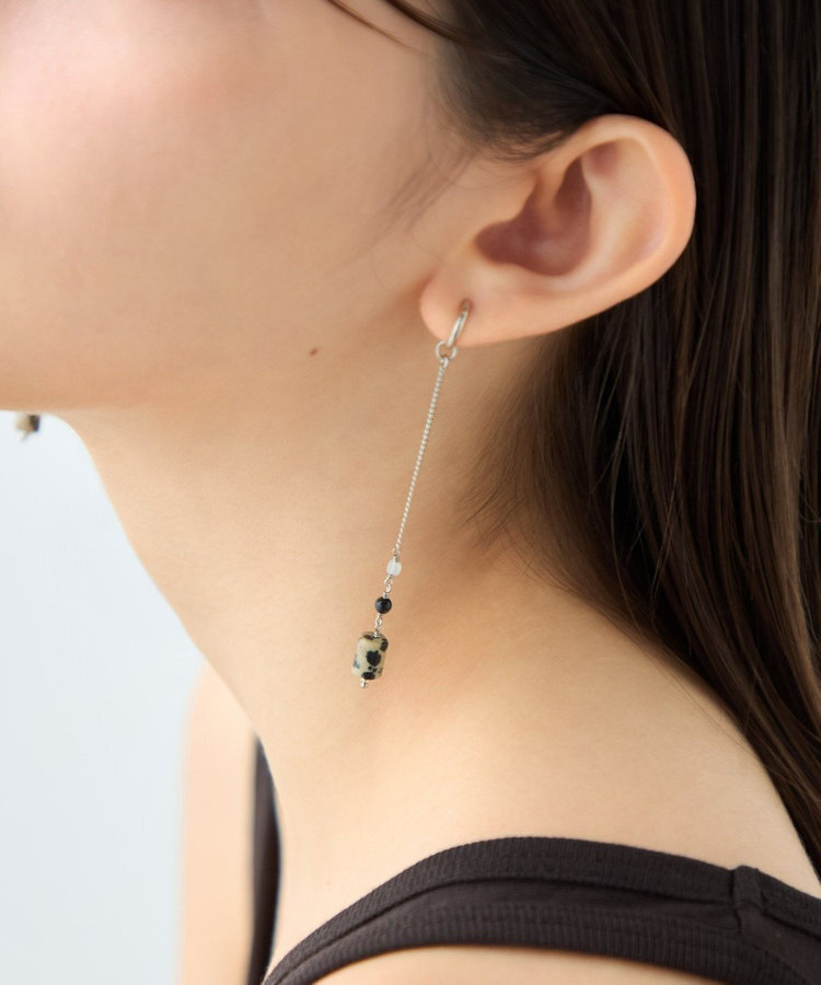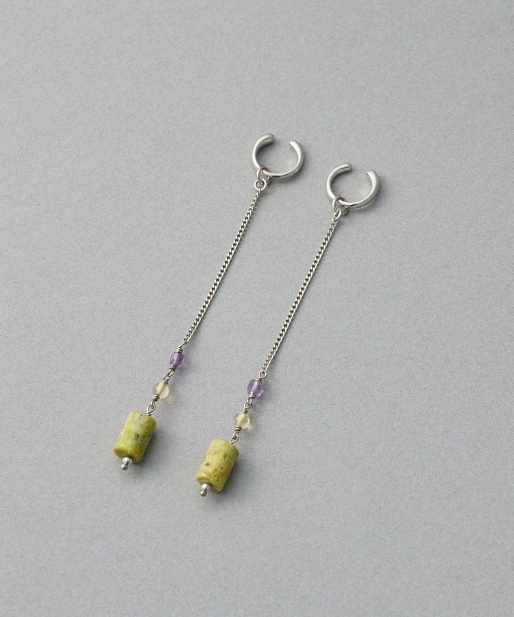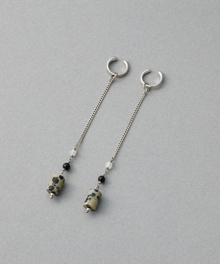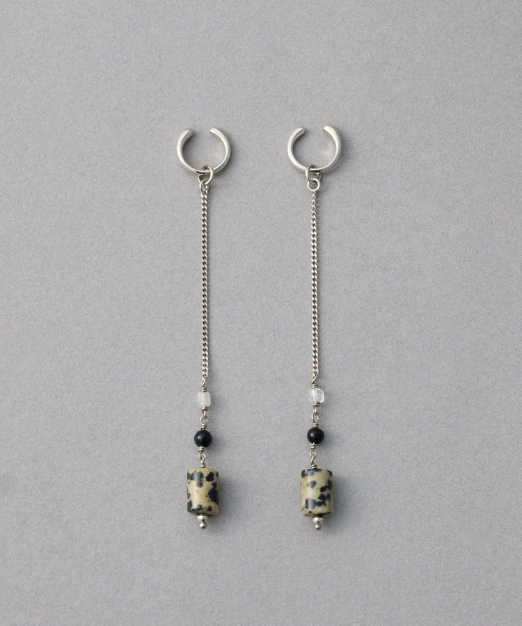 ete 天然石長鍊圓柱垂墜C型夾式耳環