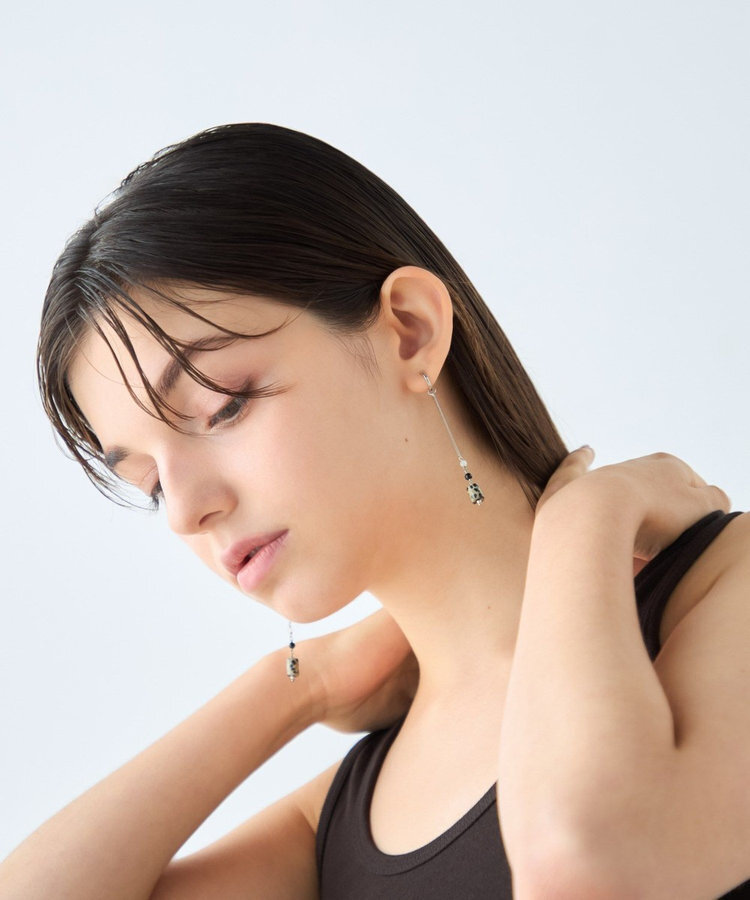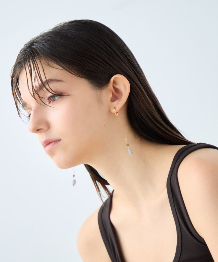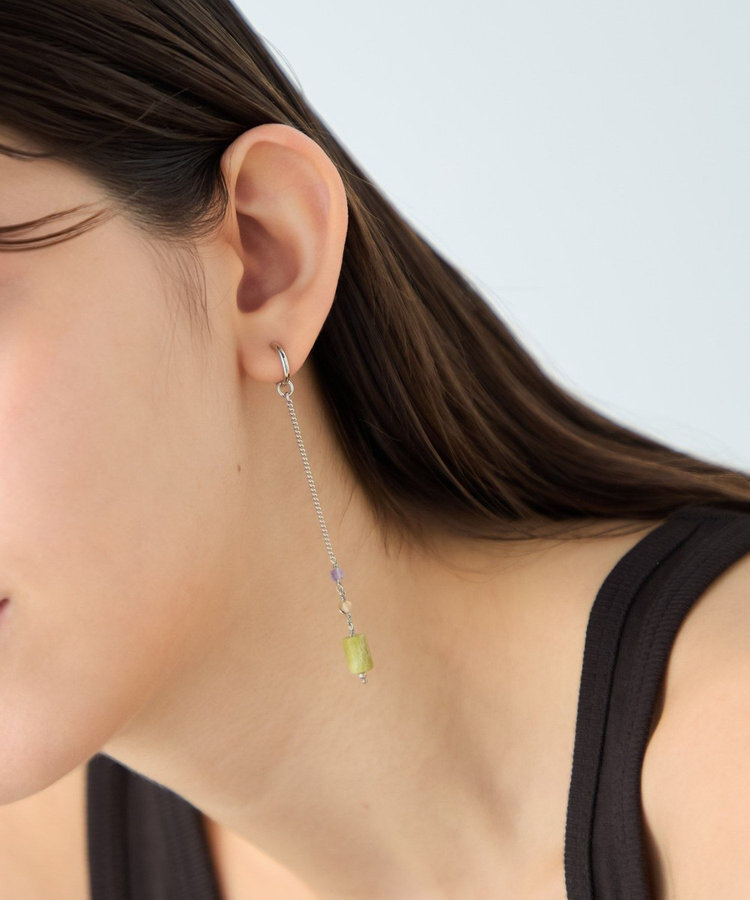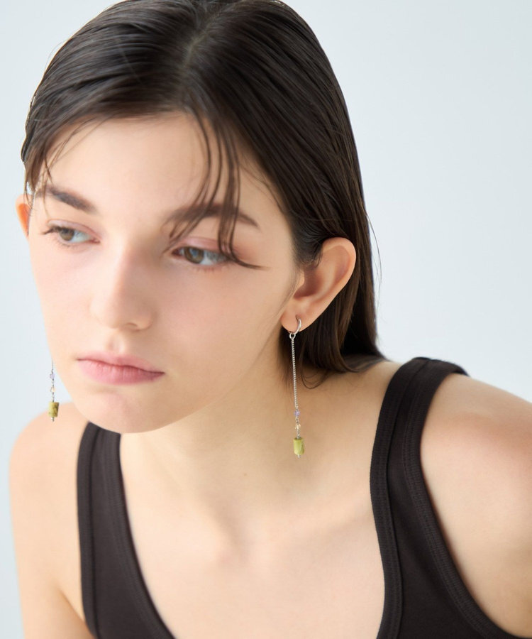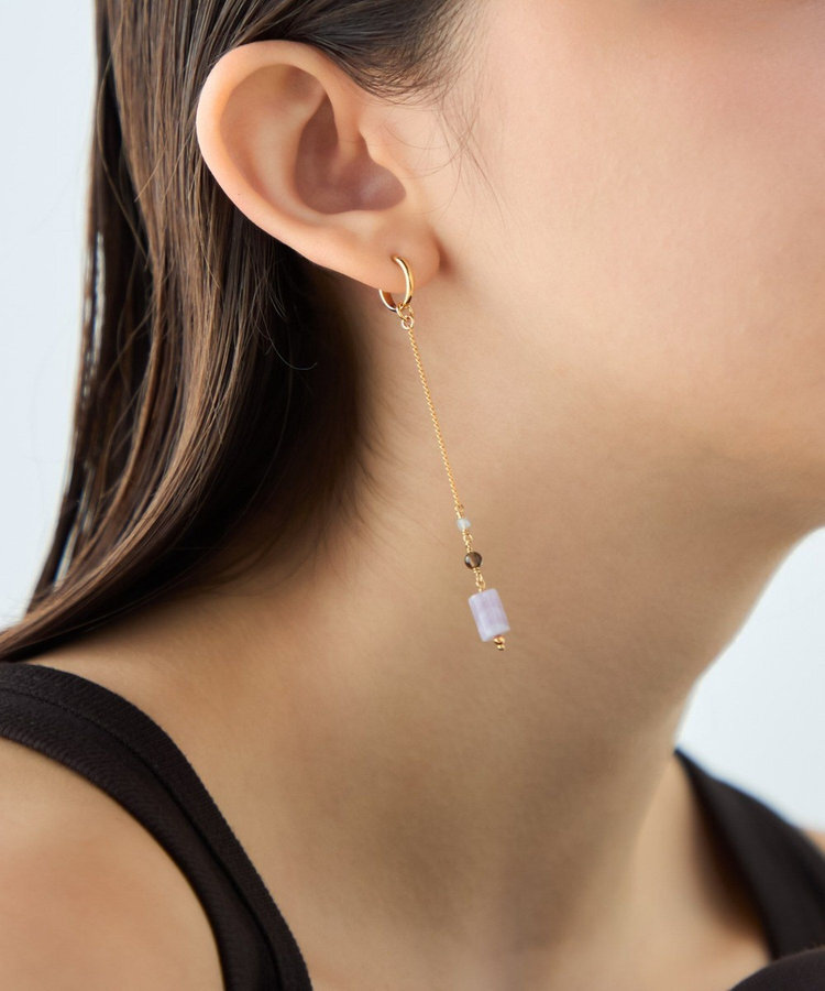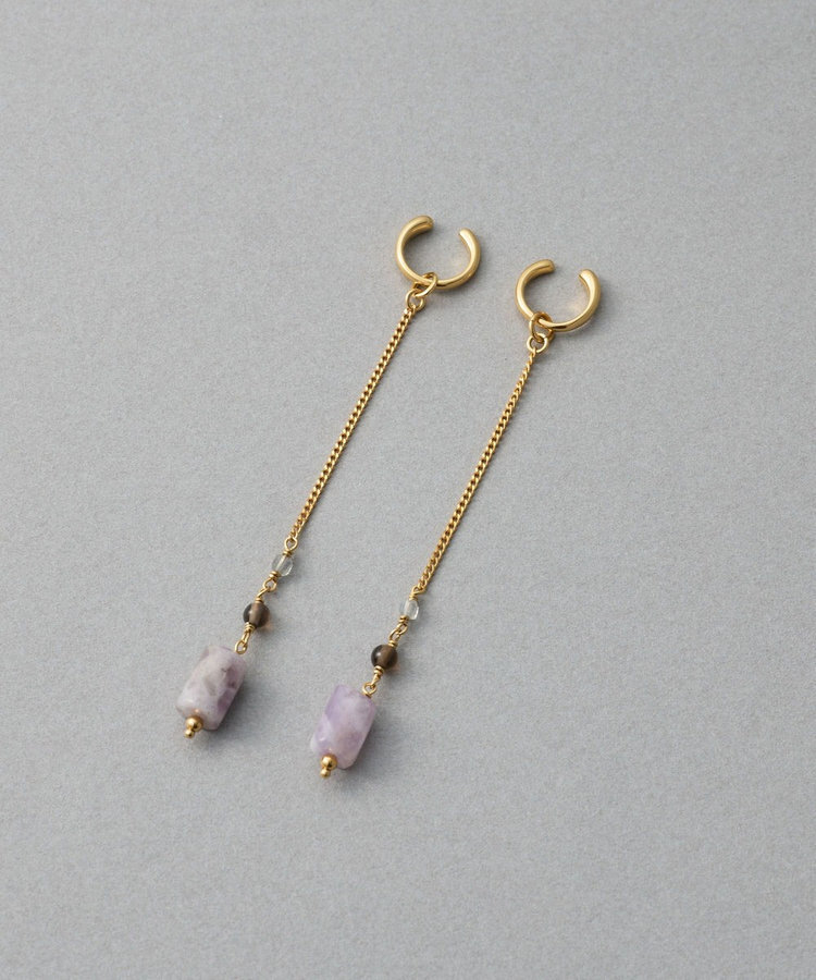 ete 天然石長鍊圓柱垂墜C型夾式耳環