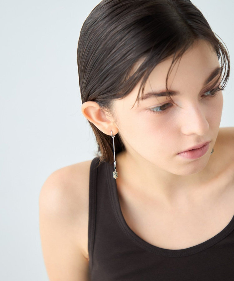 以獨特造型的天然石與鍊條的光澤交織出摩登的氣息。