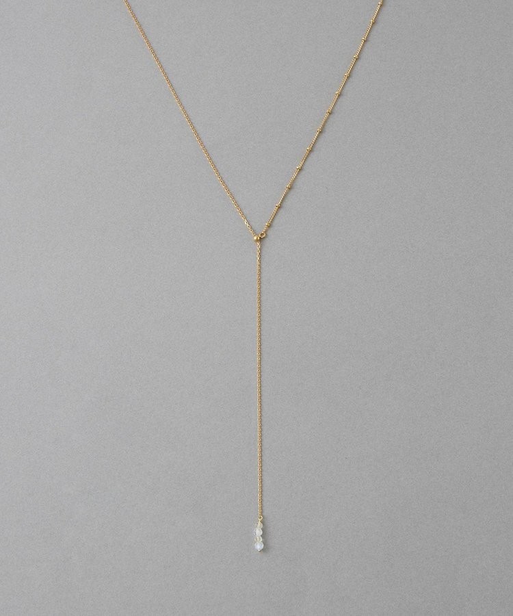 隨意擺動的長鍊設計,呈現自然洗鍊的氛圍。末端點綴的寶石細節,為整體造型帶來低調的亮點。