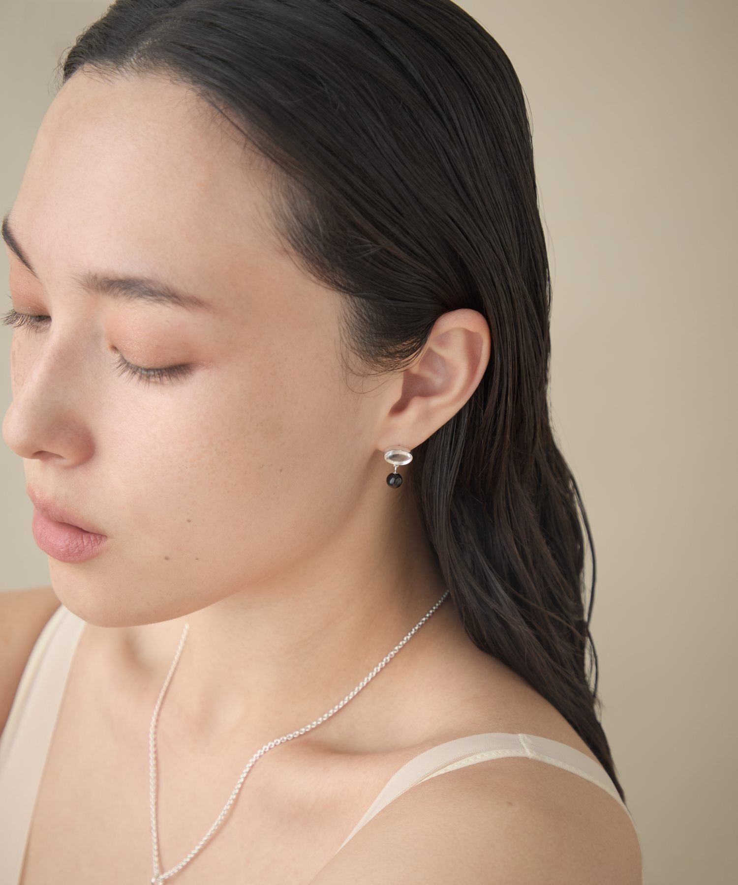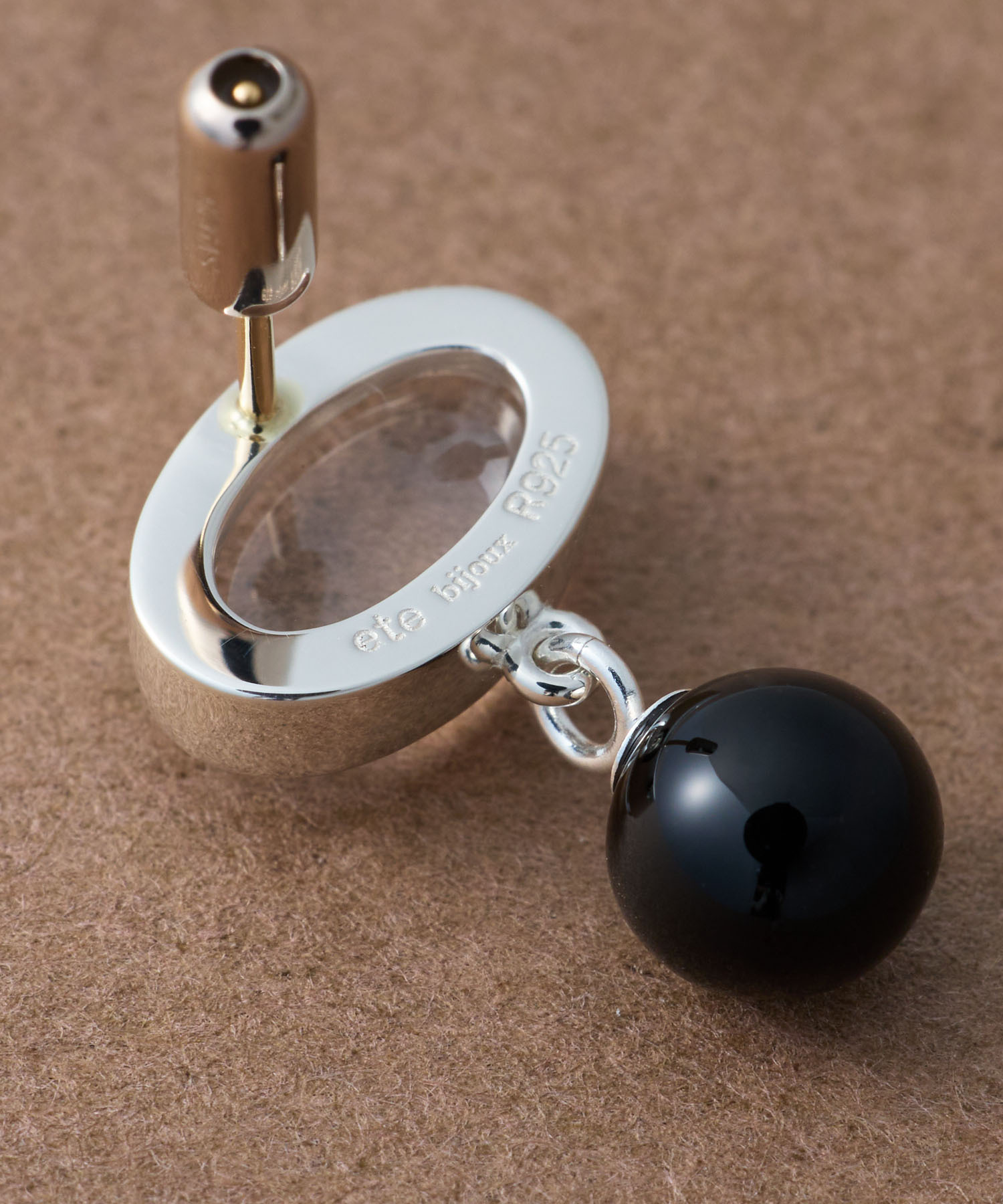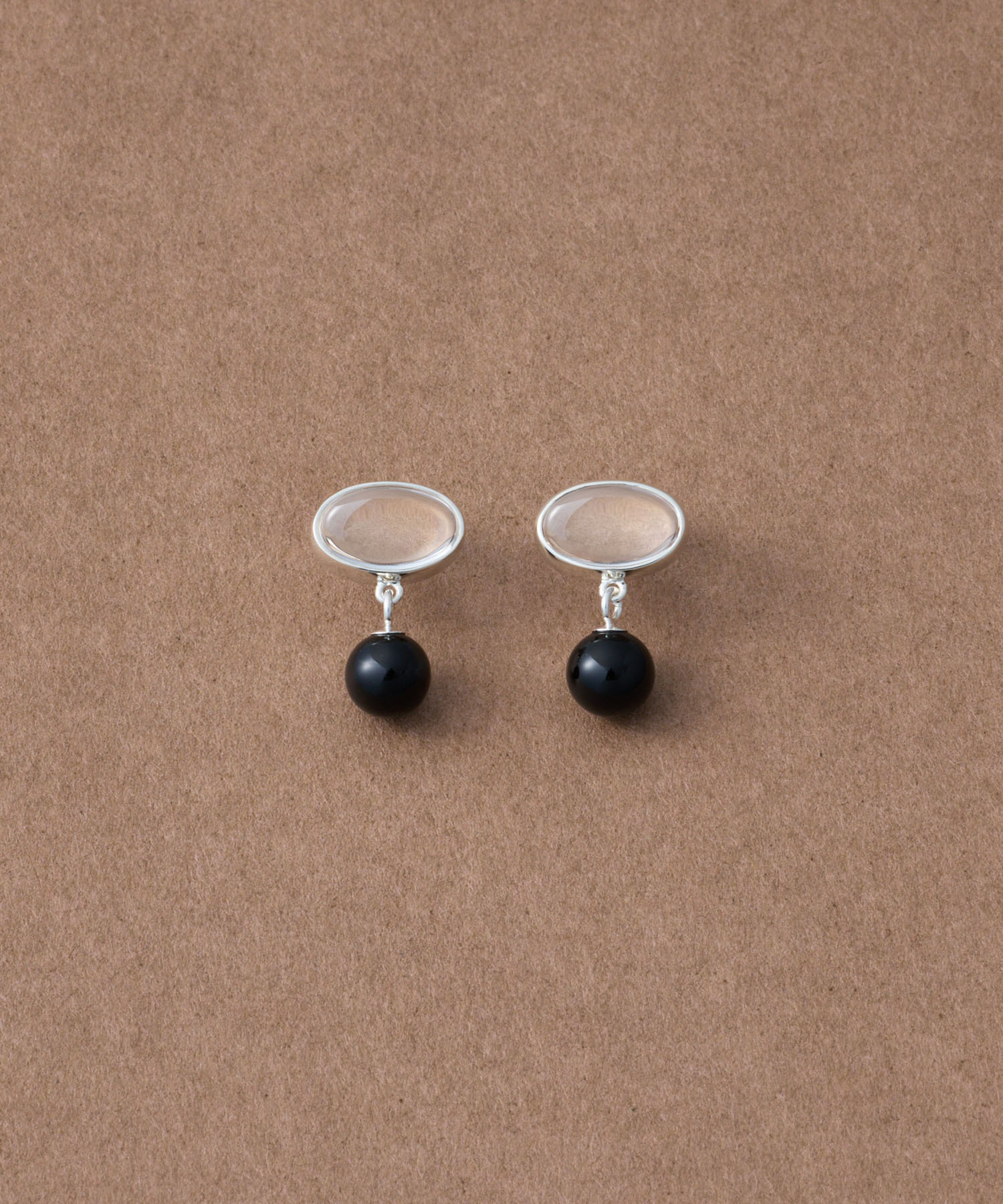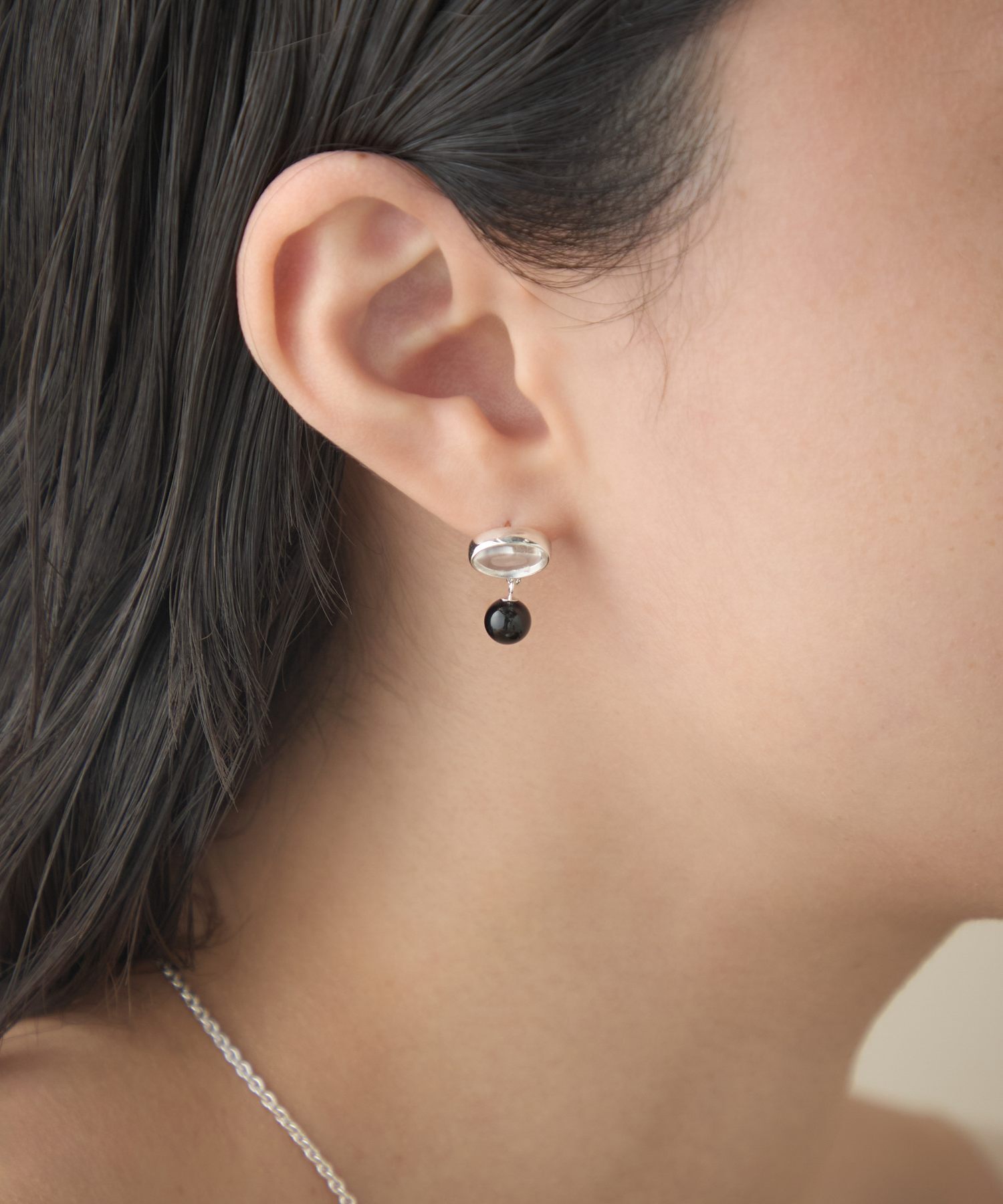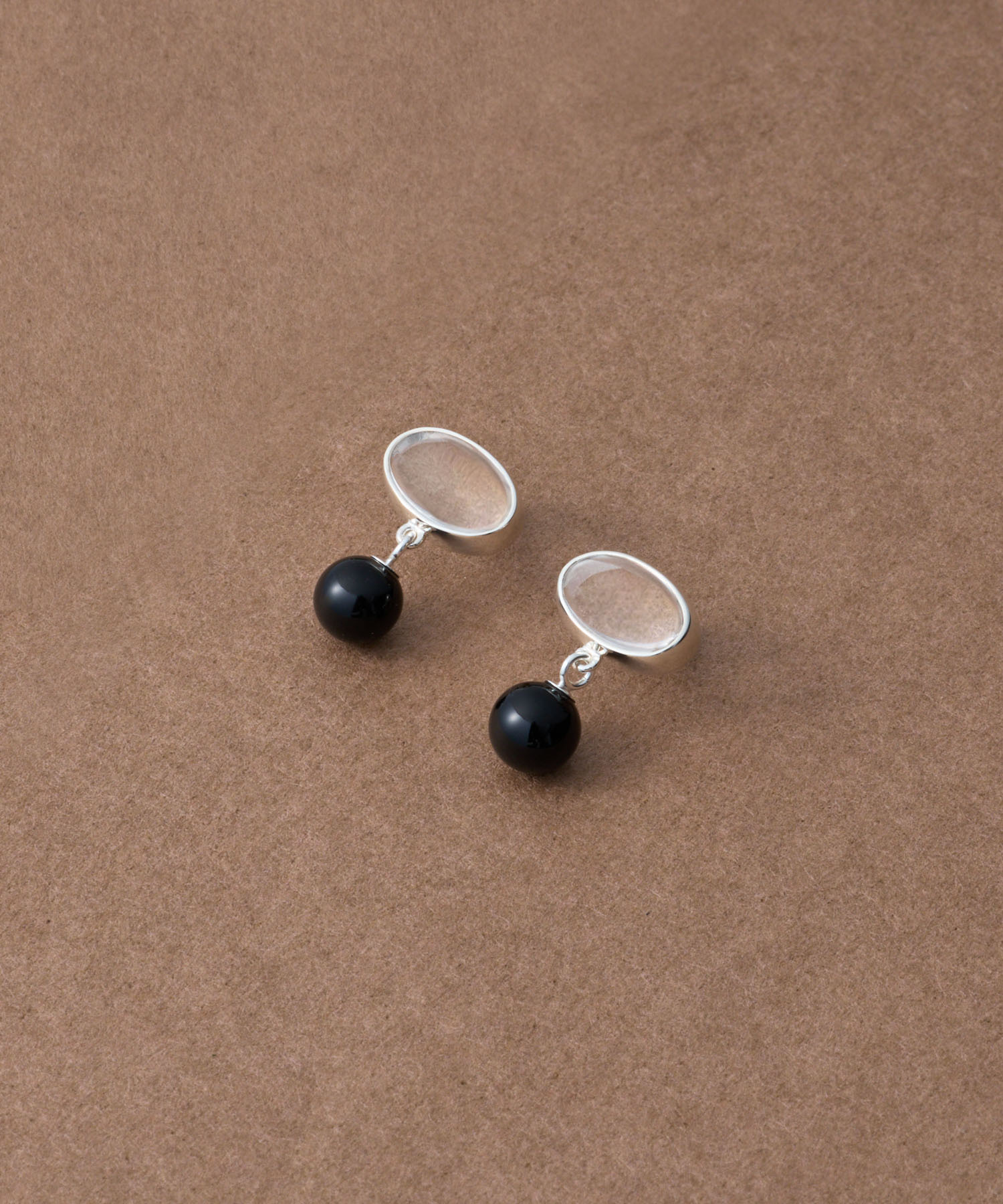 ete bijoux [Sphere] Re-grow 雙面切割石英/黑玉髓再生銀耳環