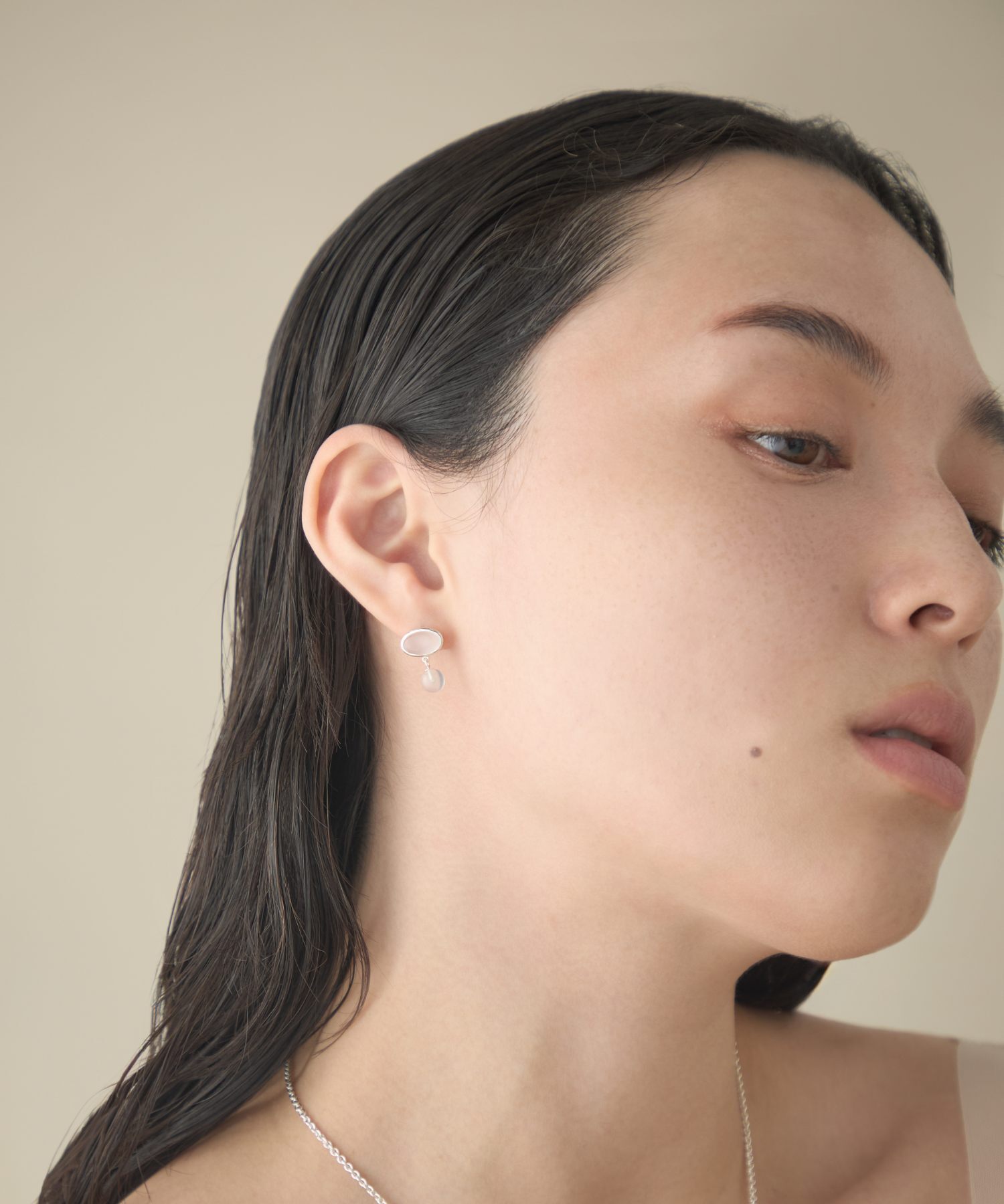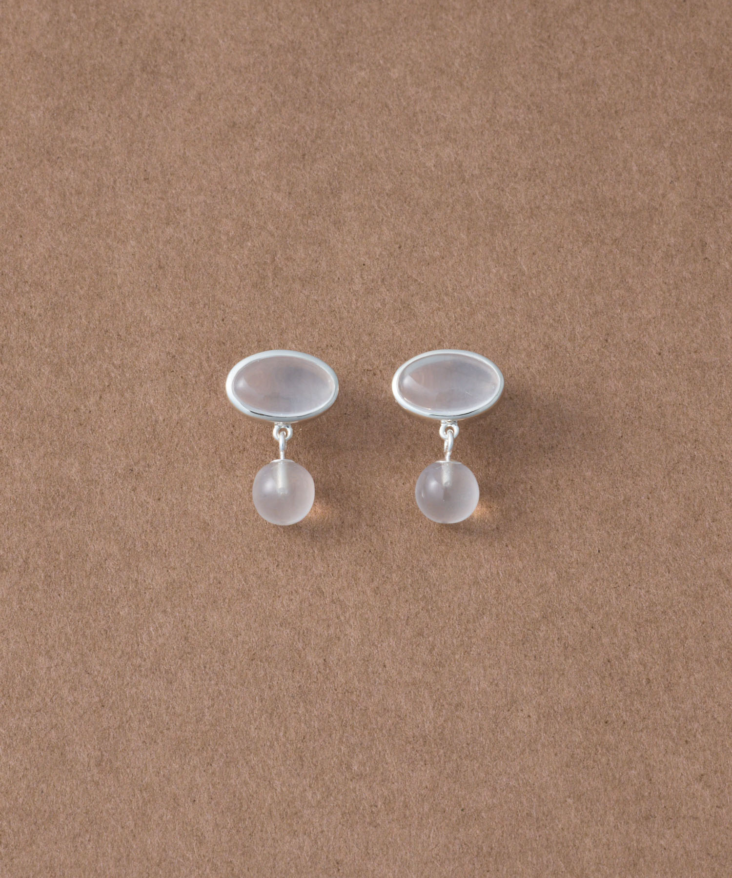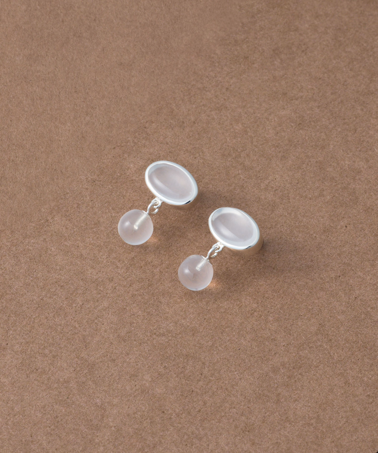 ete bijoux [Sphere] Re-grow 雙面切割乳白石英再生銀耳環