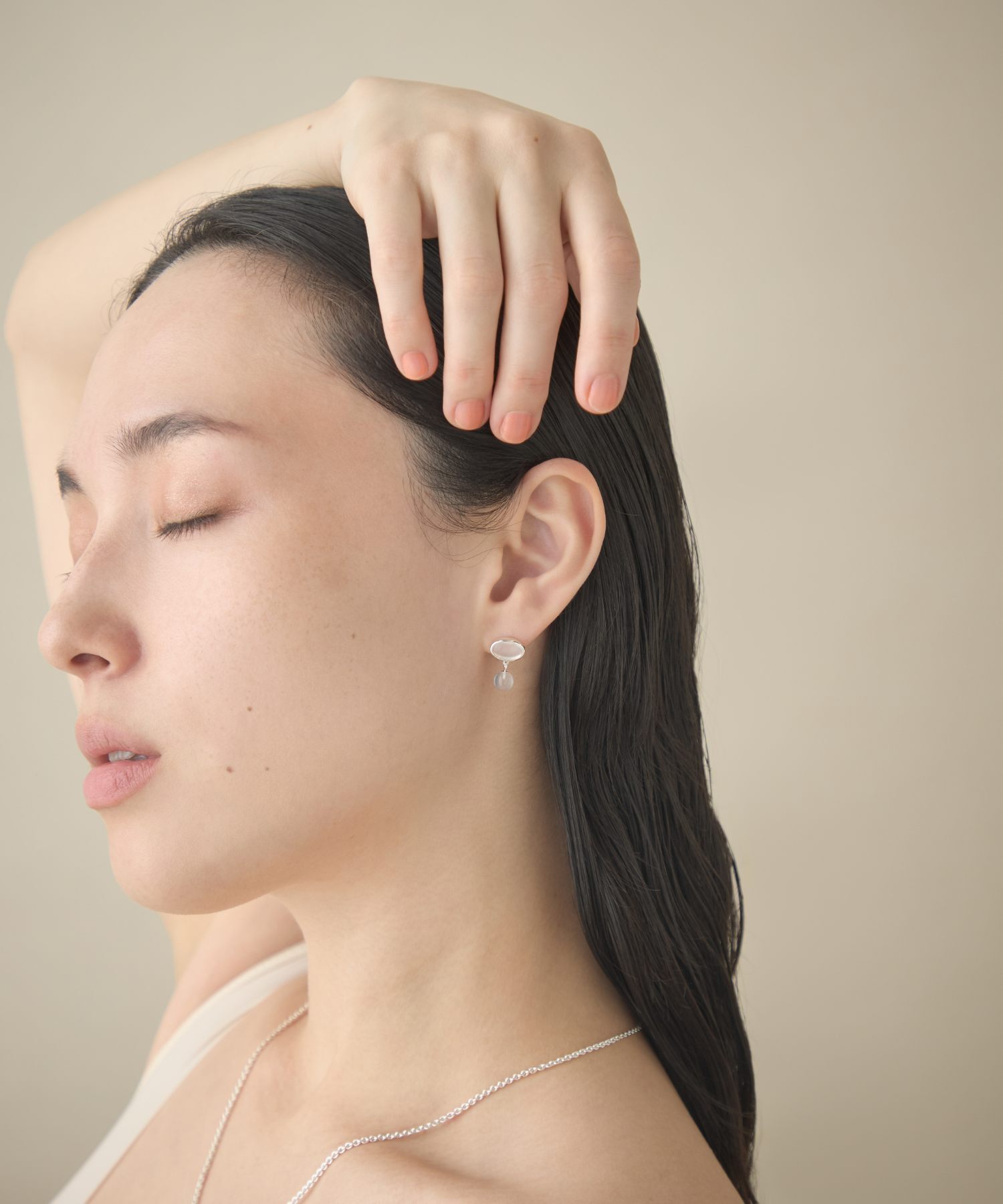 以細緻打磨的米白石英打造的耳環,自然融入肌膚。