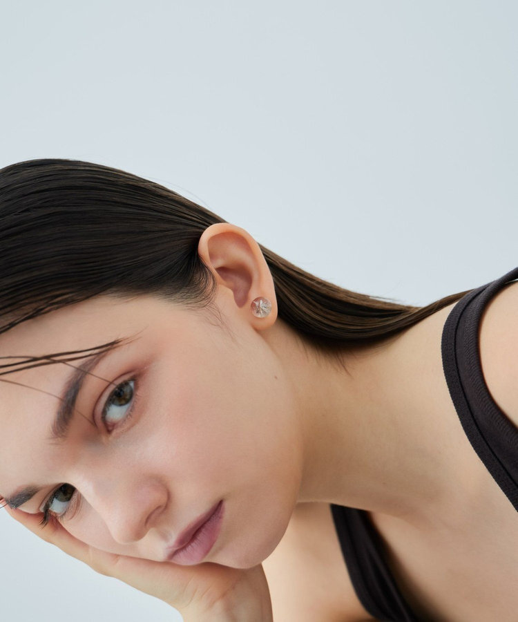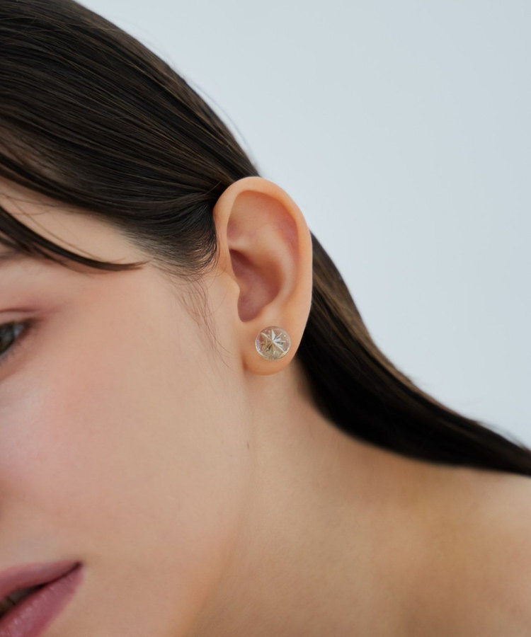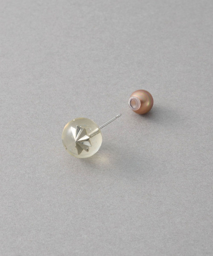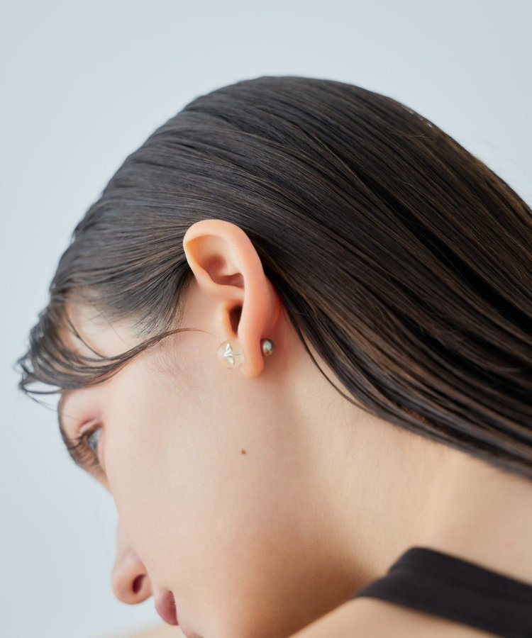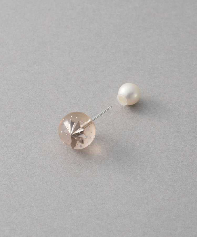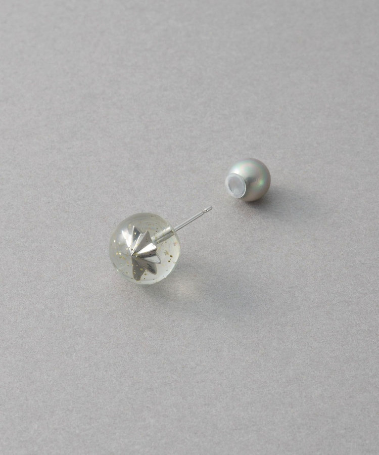 ete [Ornament Pierce] 極光雪花水晶球珍珠單耳環