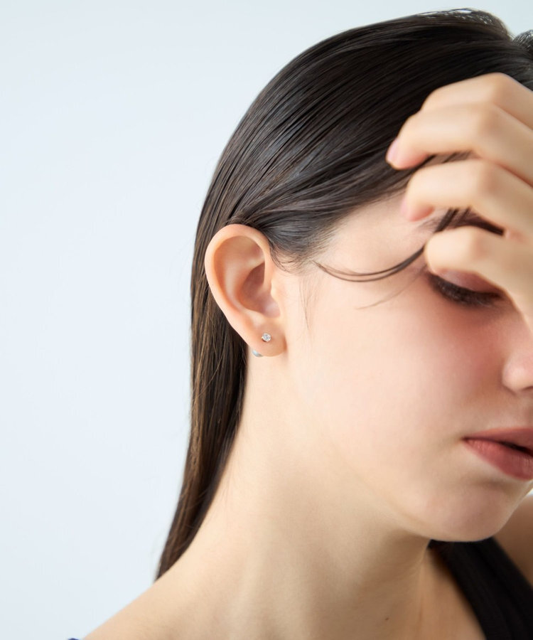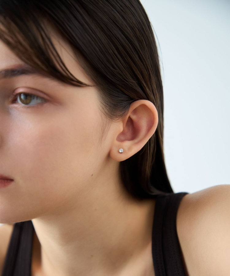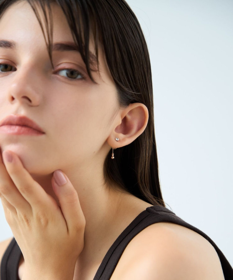 粉霧金色:SV925純銀包K18粉霧金塗層(不含鎳,減緩過敏可能性)、鋯石,耳針:K18黃金包霧面粉霧金塗層(不含鎳,減緩過敏可能性)、耳後釦:貝珍珠(人造珍珠|米色)、矽膠