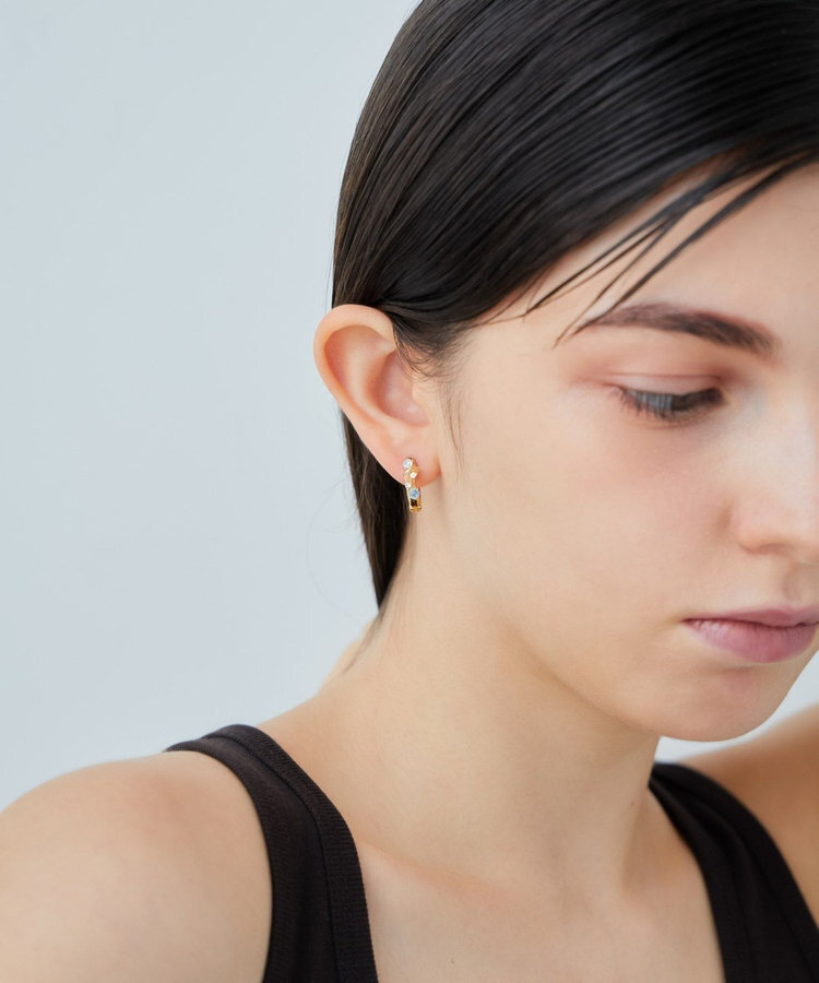 金色:SV925純銀包K18黃金塗層(不含鎳,減緩過敏可能性)、鋯石(白色、深香檳色、香檳色)、天藍托帕人造石,彈簧釦:不鏽鋼包鉑金塗層(不含鎳,減緩過敏可能性),耳針:K18黃金包K18黃金塗層(不含鎳,減緩過敏可能性)