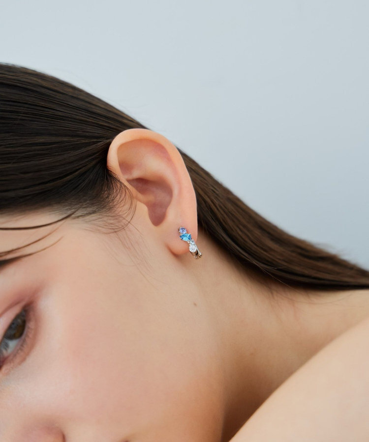 鉑金色:SV925純銀包鉑金塗層(不含鎳,減緩過敏可能性)、鋯石(深藍托帕石、白色)、深紫坦桑人造石、天藍托帕人造石,彈簧釦:不鏽鋼包鉑金塗層(不含鎳,減緩過敏可能性),耳針:K18黃金包K18黃金塗層(不含鎳,減緩過敏可能性)