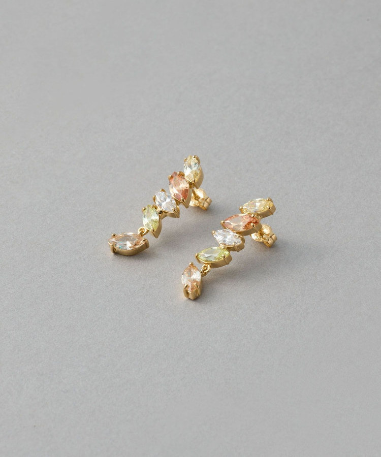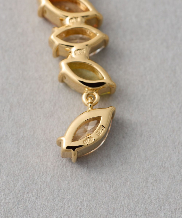 材質:SV925純銀包K18黃金塗層(不含鎳,減緩過敏可能性),鋯石(淺黃色、深香檳色、白色、淺橄欖色、淺香檳色);耳針:K18黃金包K18黃金塗層(不含鎳,減緩過敏可能性);耳後釦:K18黃金(不含鎳,減緩過敏可能性)