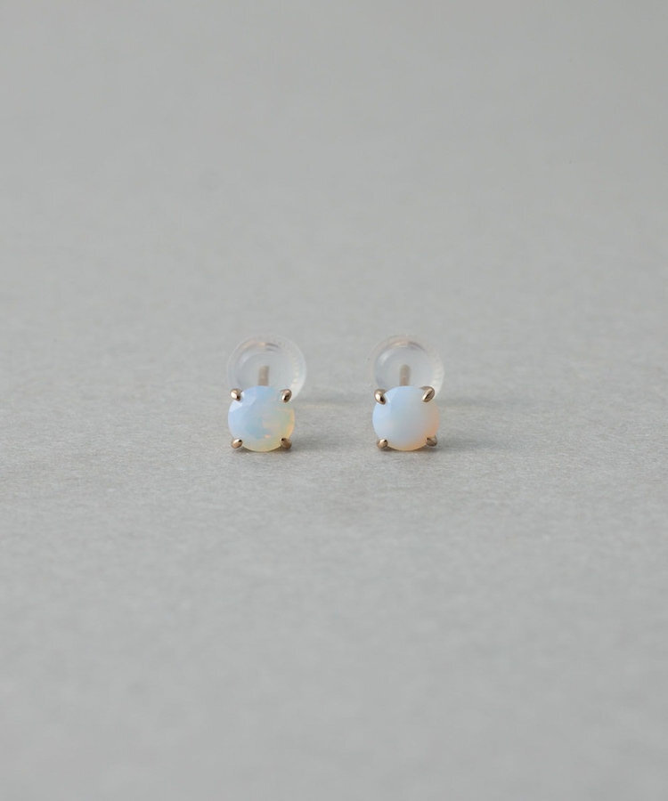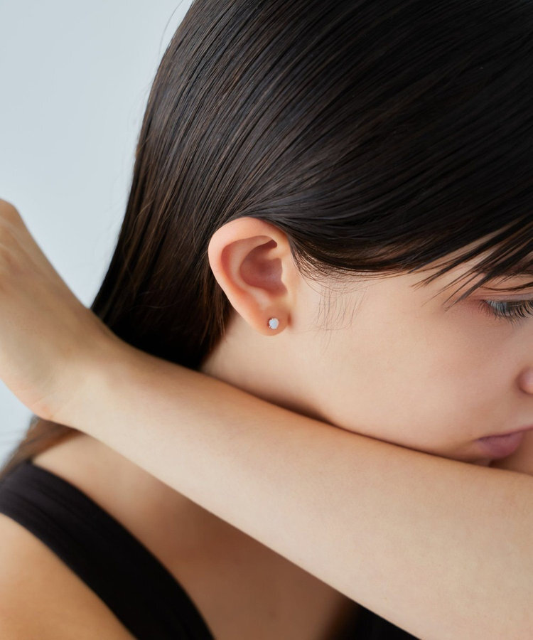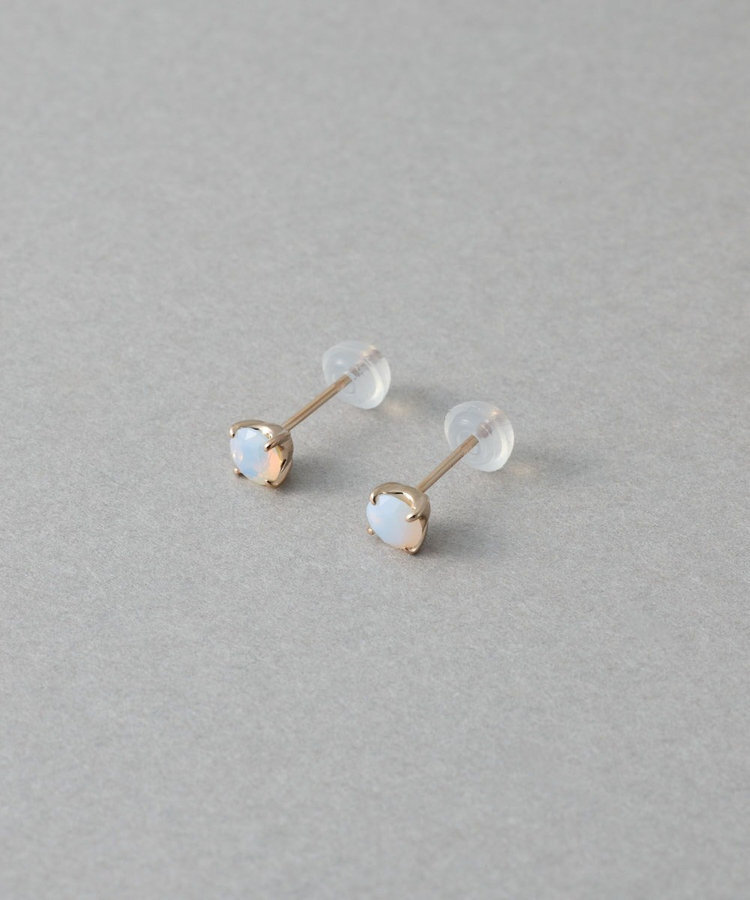 B: SV925純銀包K18粉霧金塗層(不含鎳,減緩過敏可能性)、白蛋白石,耳針:K18黃金包粉霧金塗層,耳後釦:矽膠