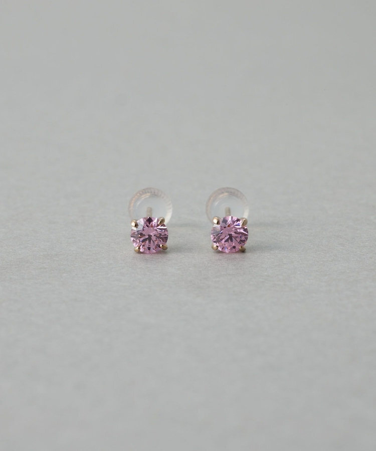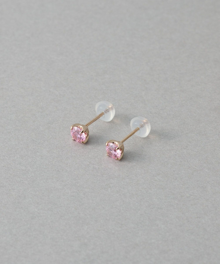 C: SV925純銀包K18粉霧金塗層(不含鎳,減緩過敏可能性)、粉紅色鋯石,耳針:K18黃金包粉霧金塗層,耳後釦:矽膠