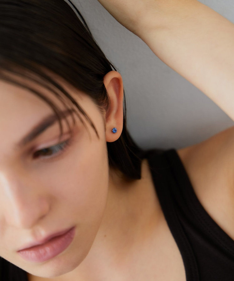 A: SV925純銀包鉑金塗層(不含鎳,減緩過敏可能性)、深藍色坦桑石,耳針:K18黃金包鉑金塗層,耳後釦:矽膠