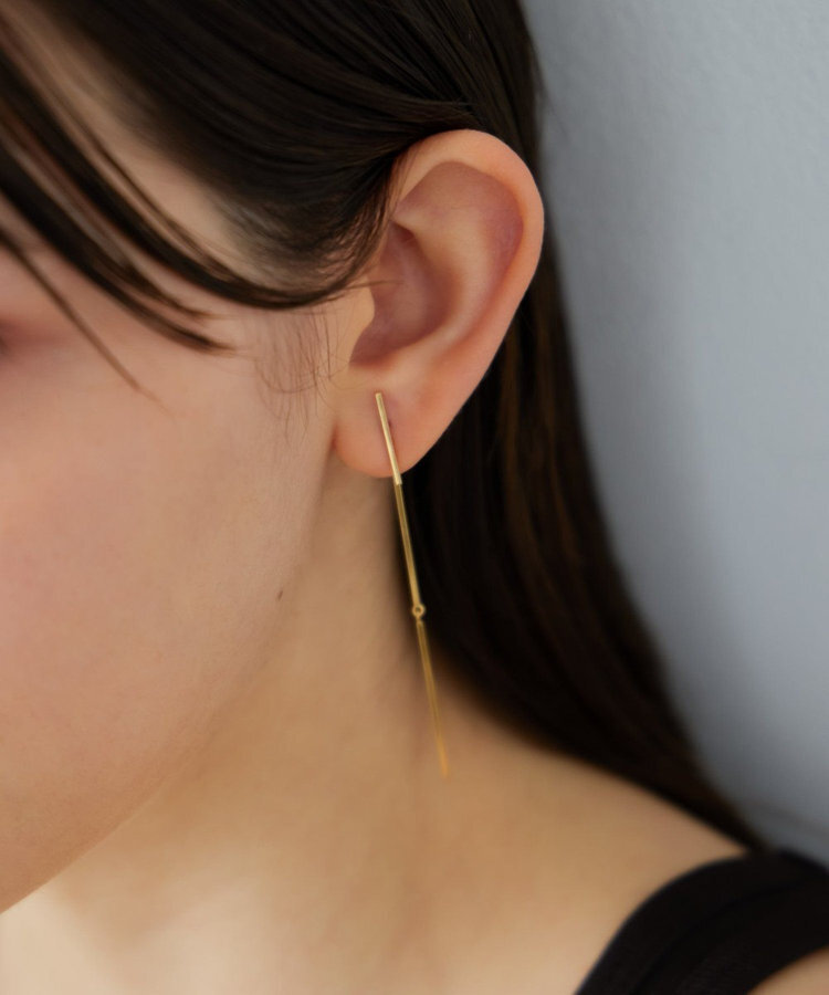 將垂墜的鏈條取下後可作為簡約棒狀線條耳針,也可以將鍊條搭配自己擁有的耳環,