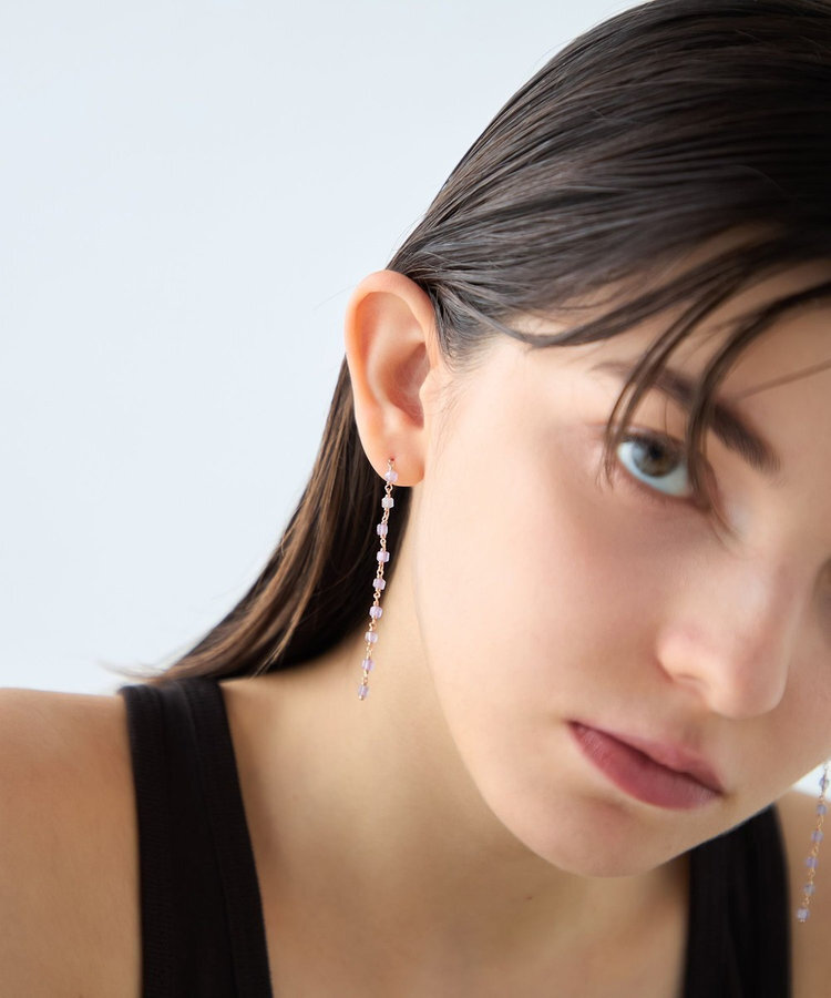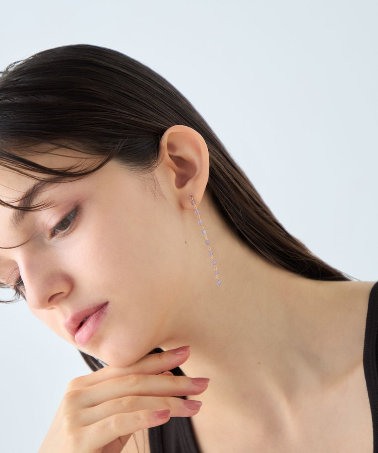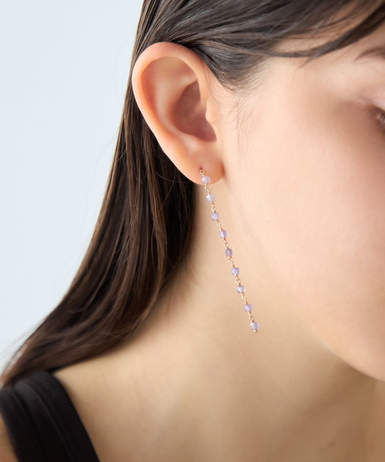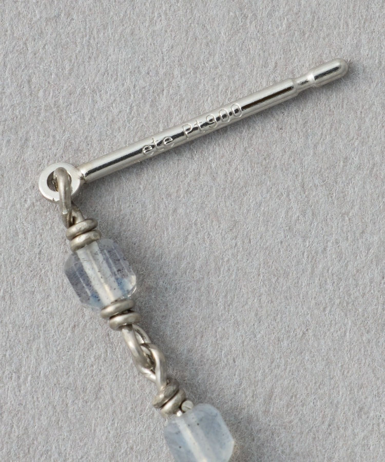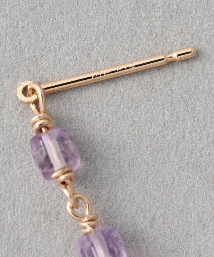 鉑金色:SV925純銀包鉑金塗層(不含鎳,減緩過敏可能性),拉長石、耳針:PT900、耳後釦:矽膠 / 粉霧金色:SV925純銀包K18粉霧金塗層(不含鎳,減緩過敏可能性),紫水晶、耳針:K18粉霧金、耳後釦:矽膠