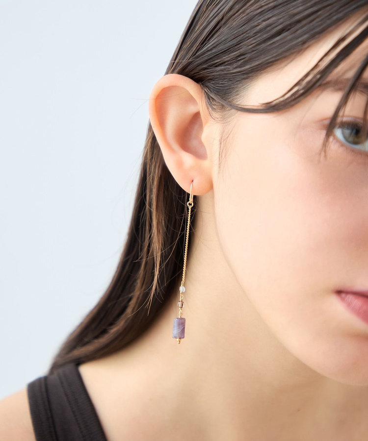 C:SV925純銀包K18黃金塗層(不含鎳,減緩過敏可能性),多色寶石、煙薰石英、拉長石、耳鈎:K18黃金