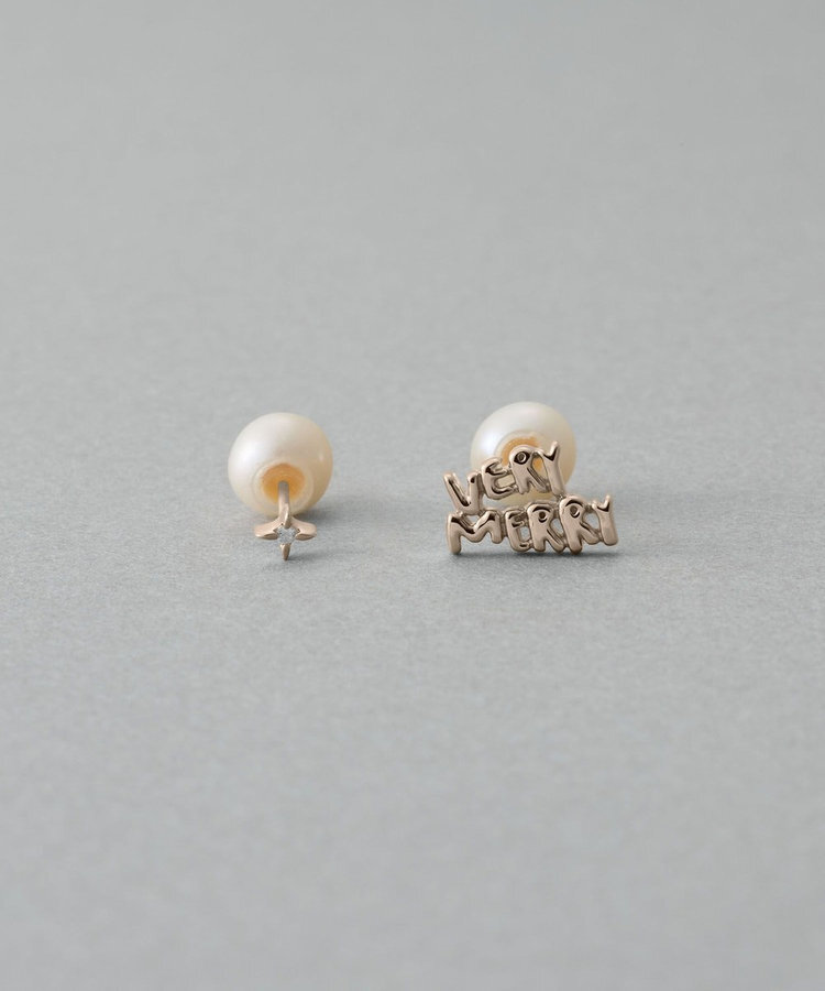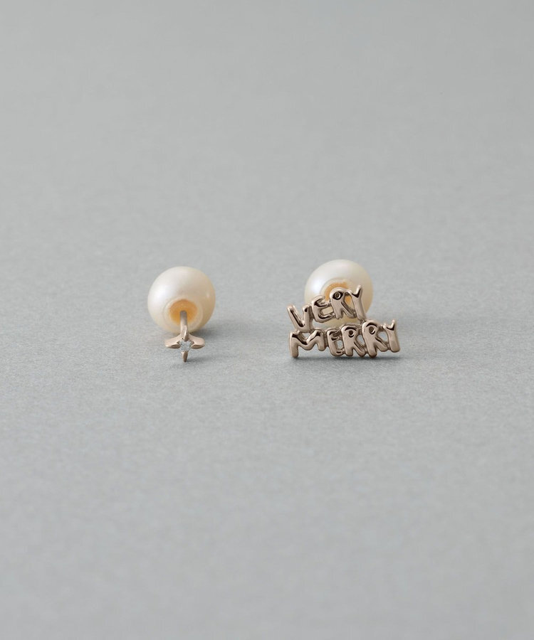 【預購商品】ete [Winter Treat|VERY MERRY] 手繪風字母/鑽石珍珠耳釦耳環