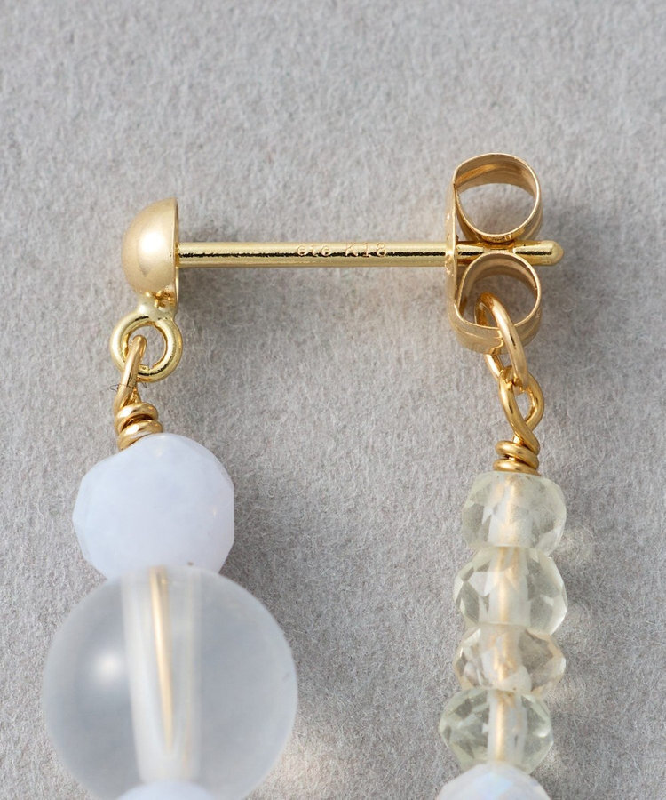 金色:SV925純銀包K18黃金塗層 (不含鎳,減緩過敏可能性)、藍玉髓、乳白石英、綠石英、白色拉長石、玫瑰石英;耳針及耳後釦:K18黃金 (不含鎳,減緩過敏可能性)