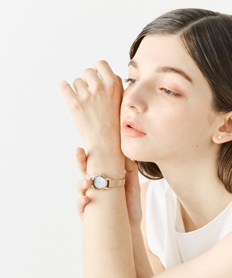 切割錶鏡隨著動作散發細緻光芒,搭配清爽俐落的時標與單一色系,展現成熟卻不失柔美的風格。